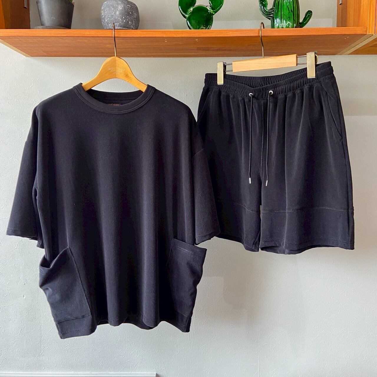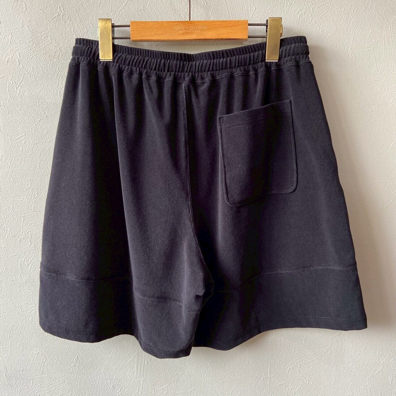 感激するほどの肌さわりと滑らかさに仕上げたパイル素材。従来のパイル機(タオル地)よりハイゲージでコンパクトに編み立てることでワンランク上の質感に仕上げてあります。ややショートで幅広のショーツ。フロント切り替えでデザインアクセント。同素材でTシャツも展開しており、セットアップでの着用もオススメ。リゾートからシティーウェアーまで活躍できるアイテム。ワンウォッシュ加工で洗濯後の縮みは少ない仕上げ。