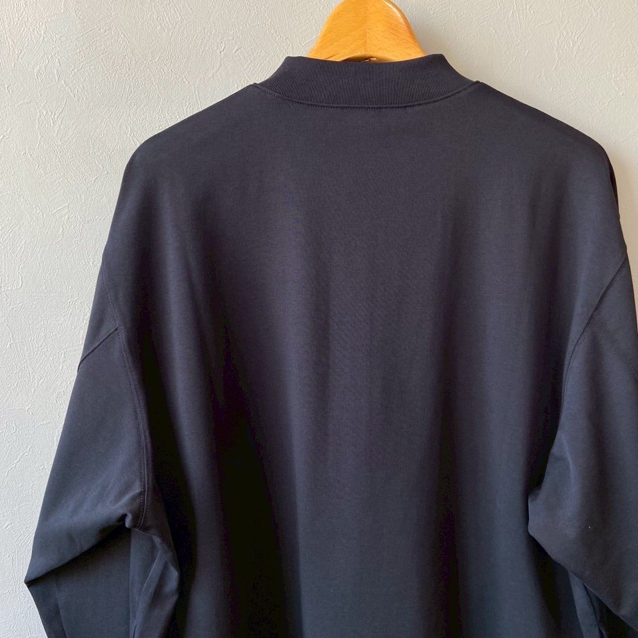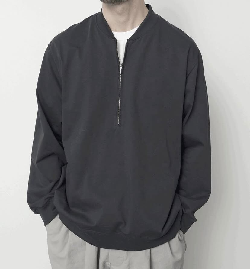 スウェットよりもライトな素材感がポイントのハーフジッププルオーバー。