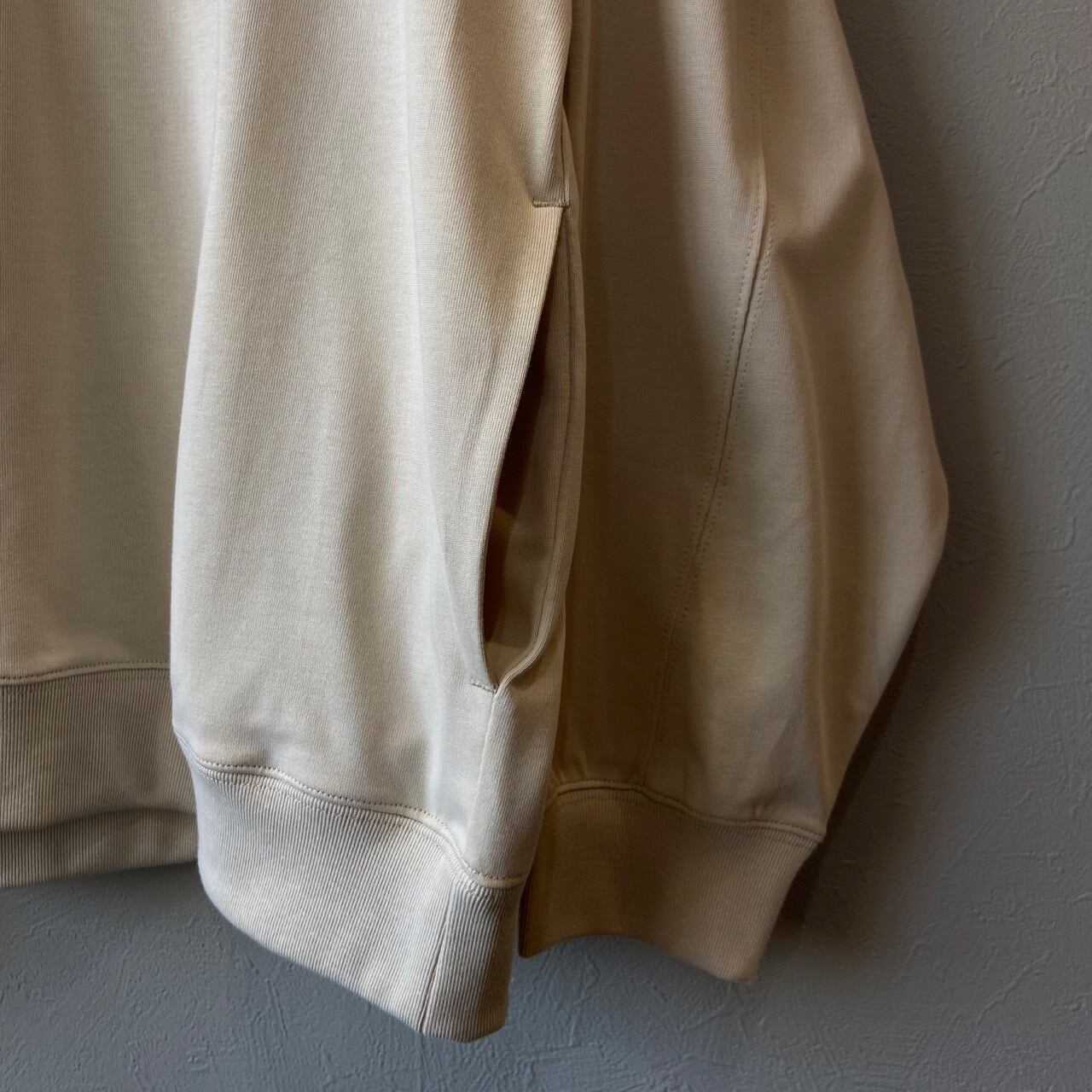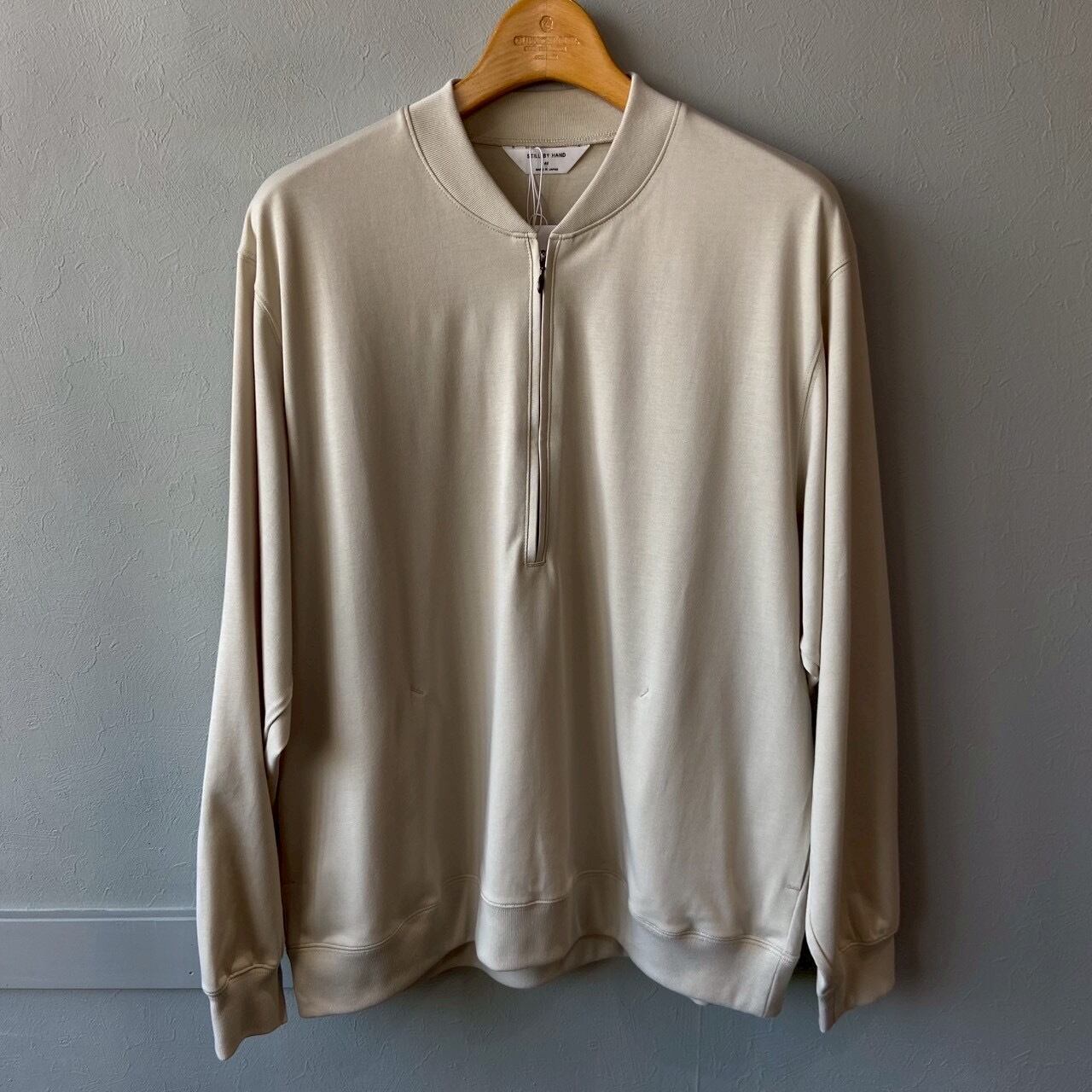 スウェットよりもライトな素材感がポイントのハーフジッププルオーバー。