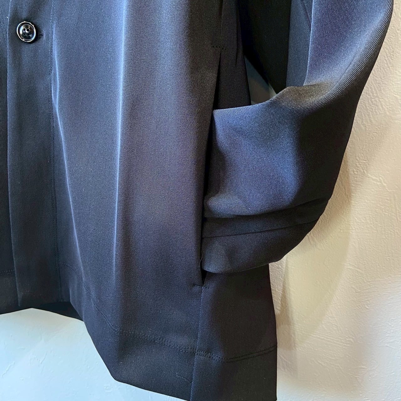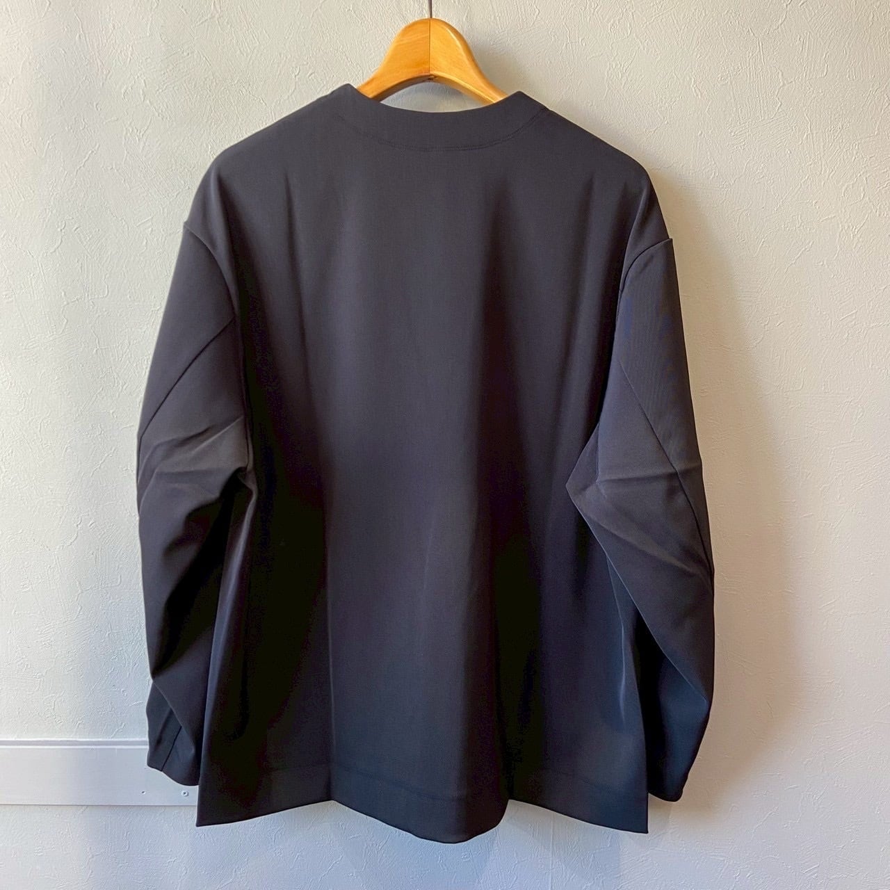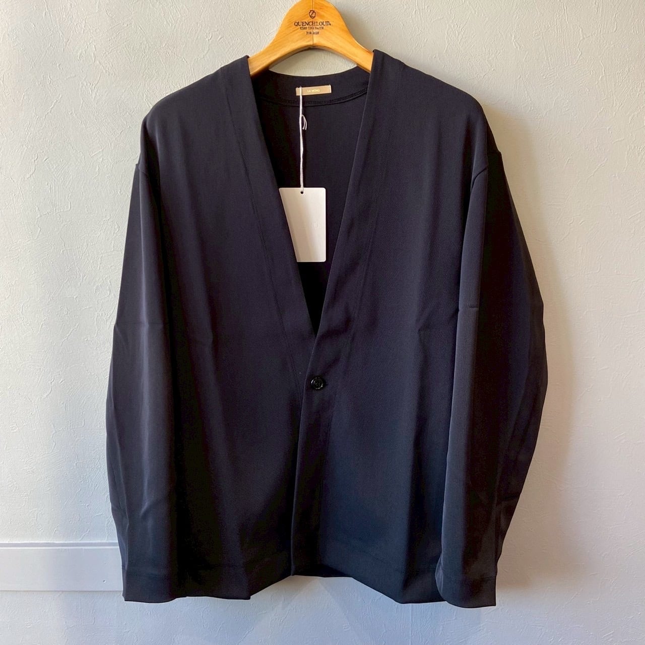 超強撚のストレッチツイル素材を使用したカーディガンジャケット。微光沢感から上質なウール素材を彷彿させカジュアル過ぎない雰囲気を楽しめる1着に仕上がっています。両サイドにポケット付き。