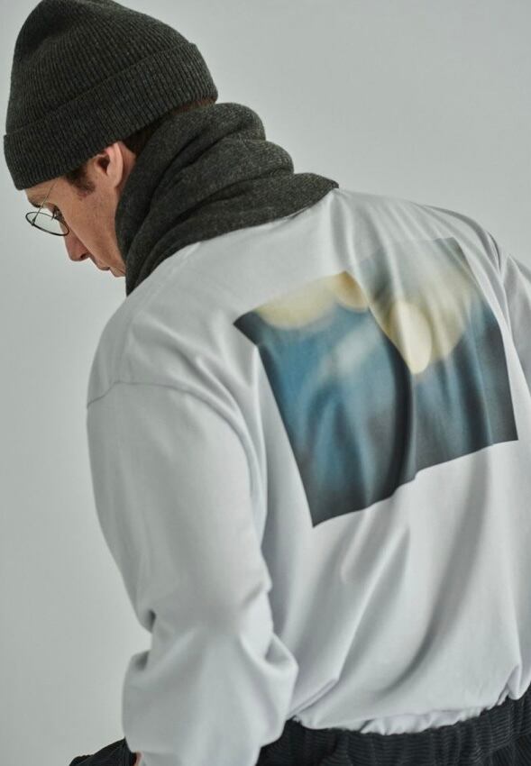 フロントには胸ポケットを配し、バックプリントがあることで秋の立ち上がりに1枚で着ていただいても素敵です。