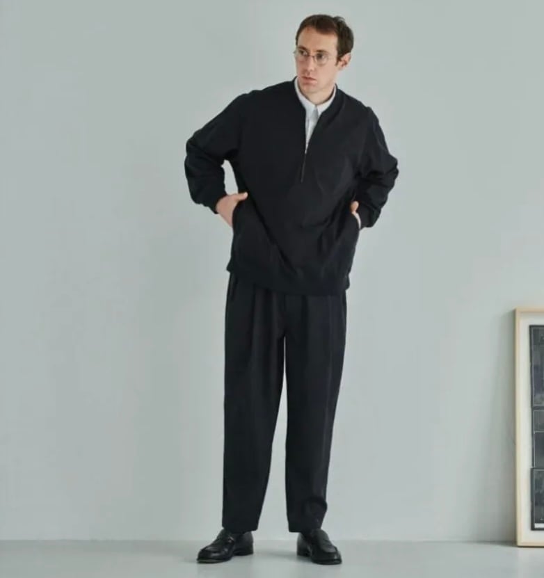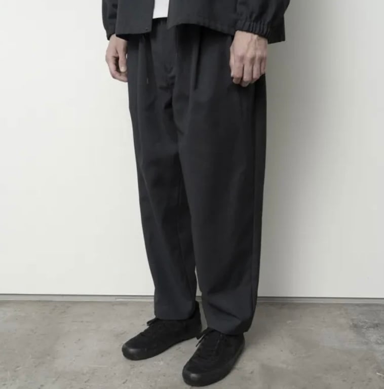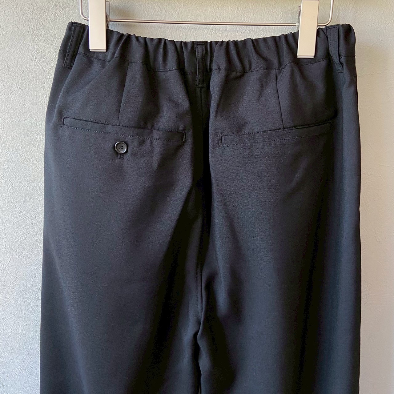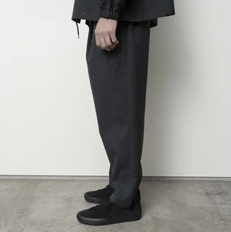 JK01253、BL01253と同素材を使用したウエストにゴムがしっかりと入ったキツめなテーパードが特徴のパンツ。