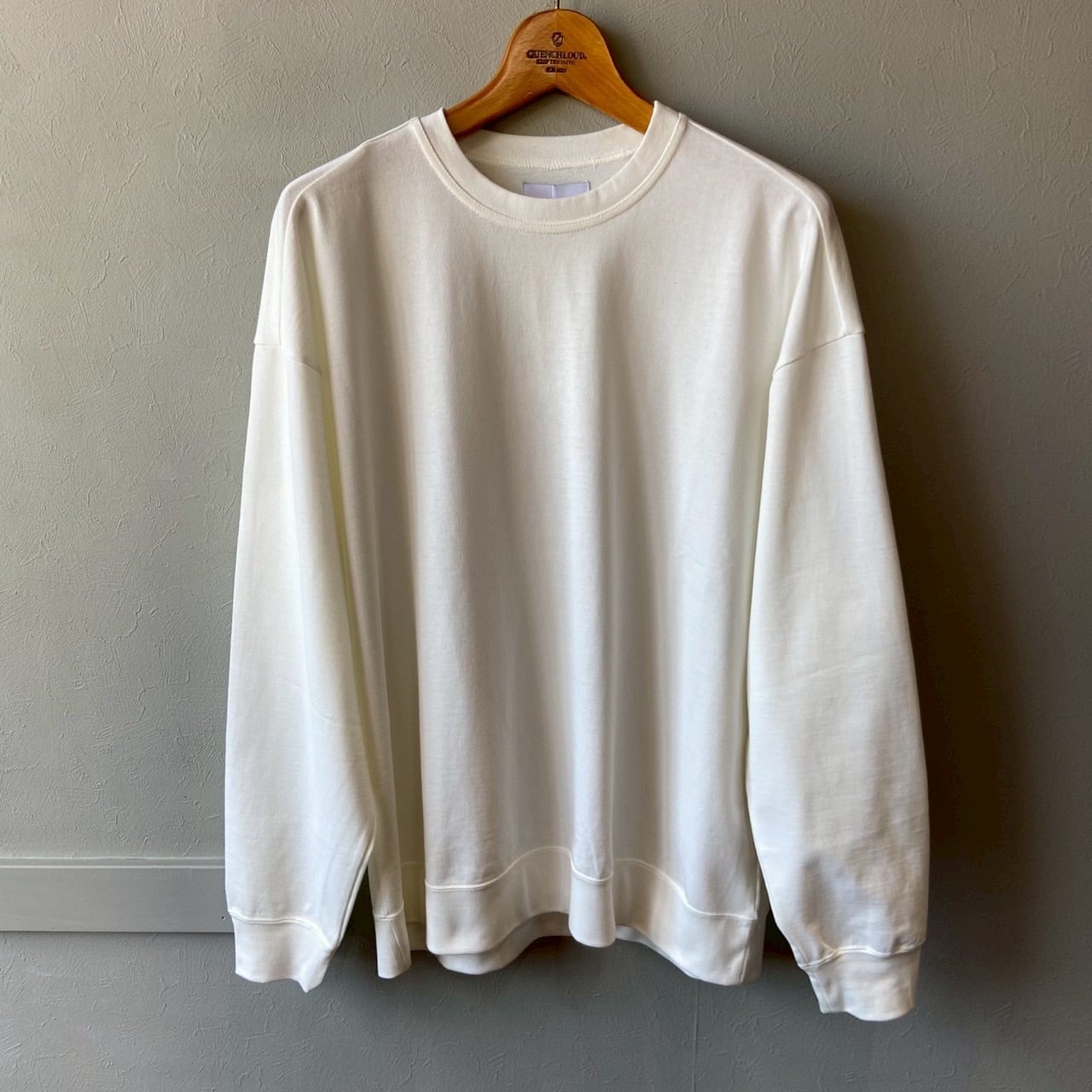 ハリコシがありながらも目面の美しい生地を使用したオーバーサイズの裾リブ仕様のスウェットライクなロンTEE。