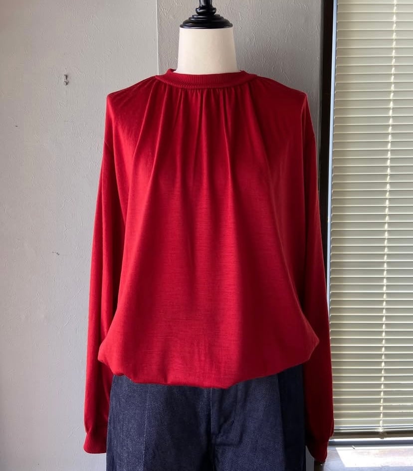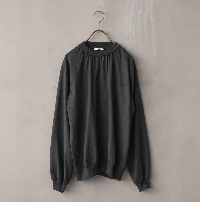 ウール ギャザーネック ロングスリーブTシャツ
