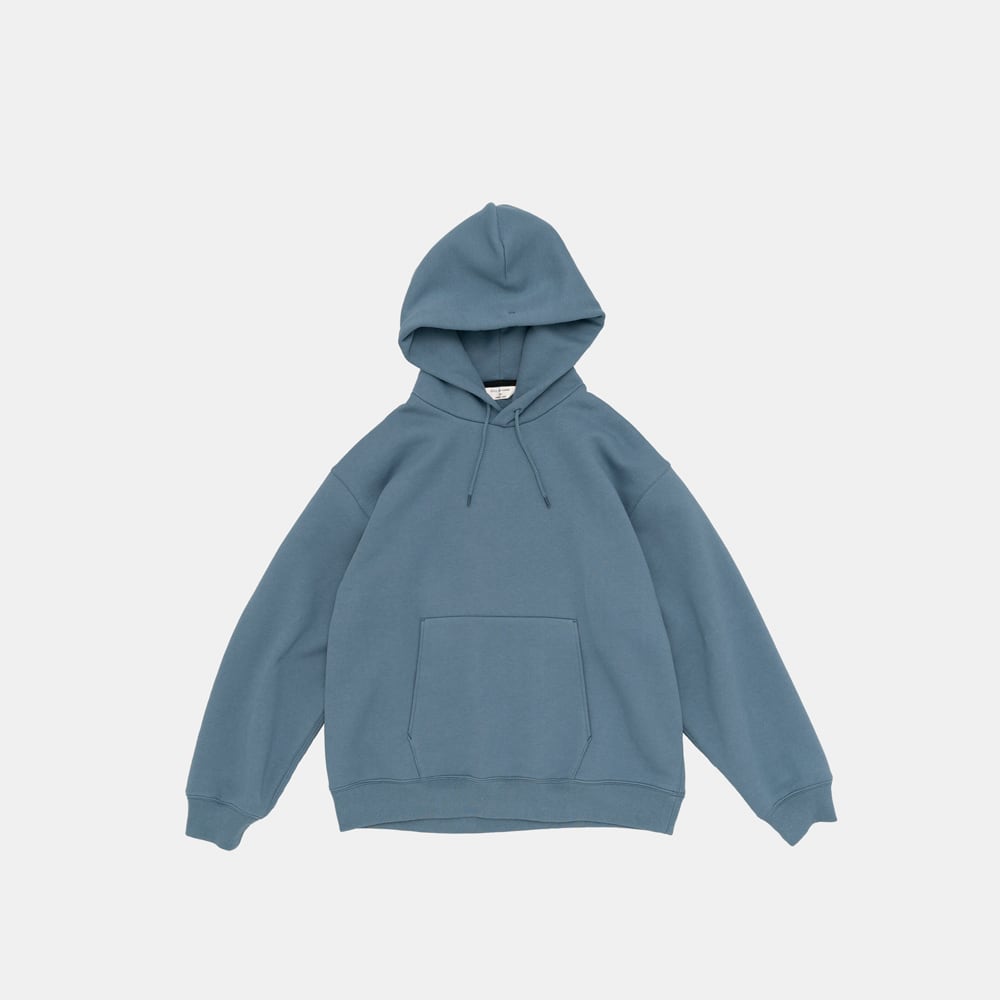 前下がりを少し深めにすることでシャツと重ね着したバランスも良く、フードのサイズとシルエットにこだわって作成しています。