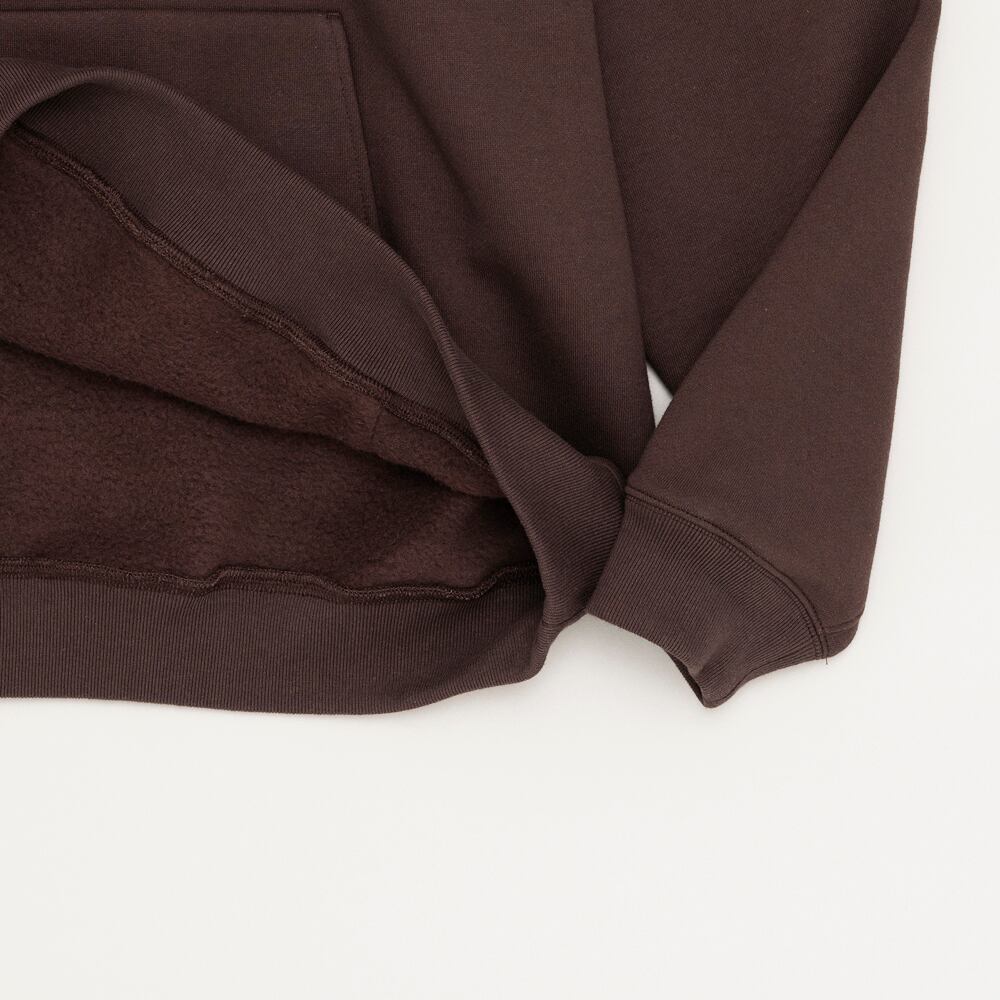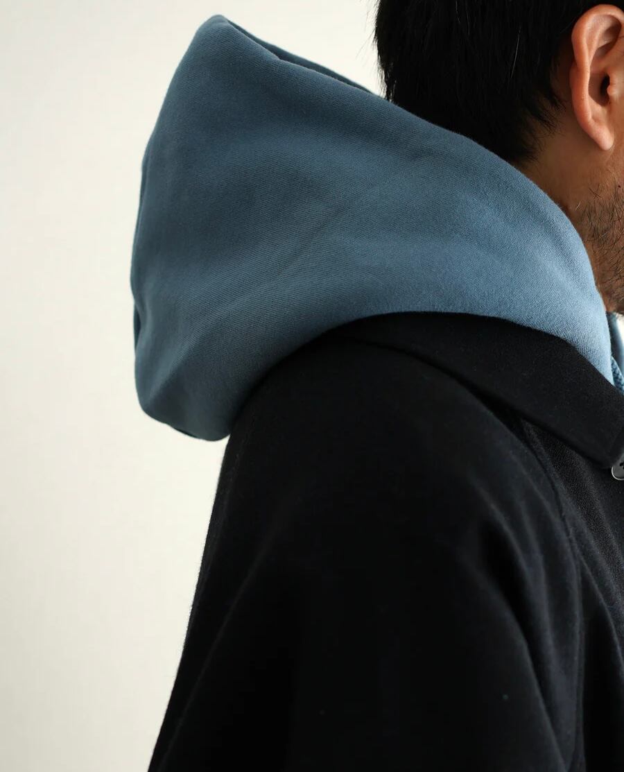 前下がりを少し深めにすることでシャツと重ね着したバランスも良く、フードのサイズとシルエットにこだわって作成しています。