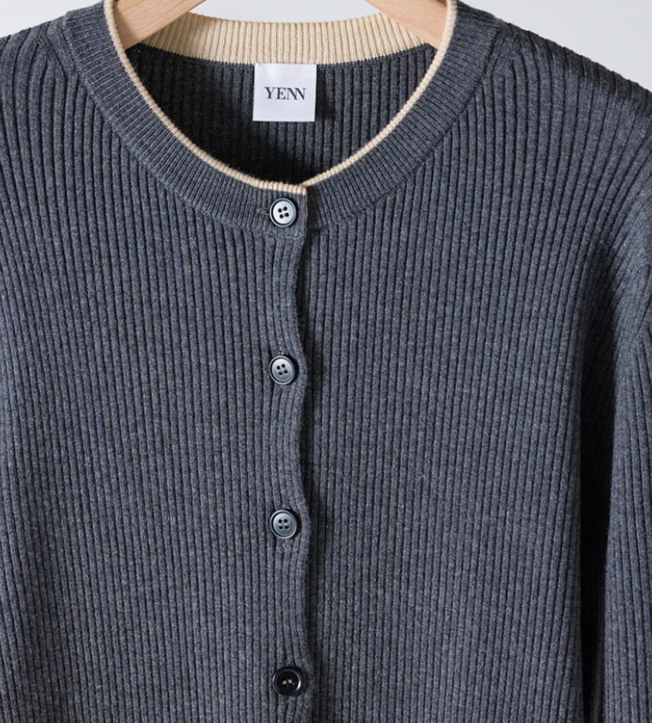 YENN(イェン) ウールリブ クルー カーディガン / トップス ニット 羽織り 長袖