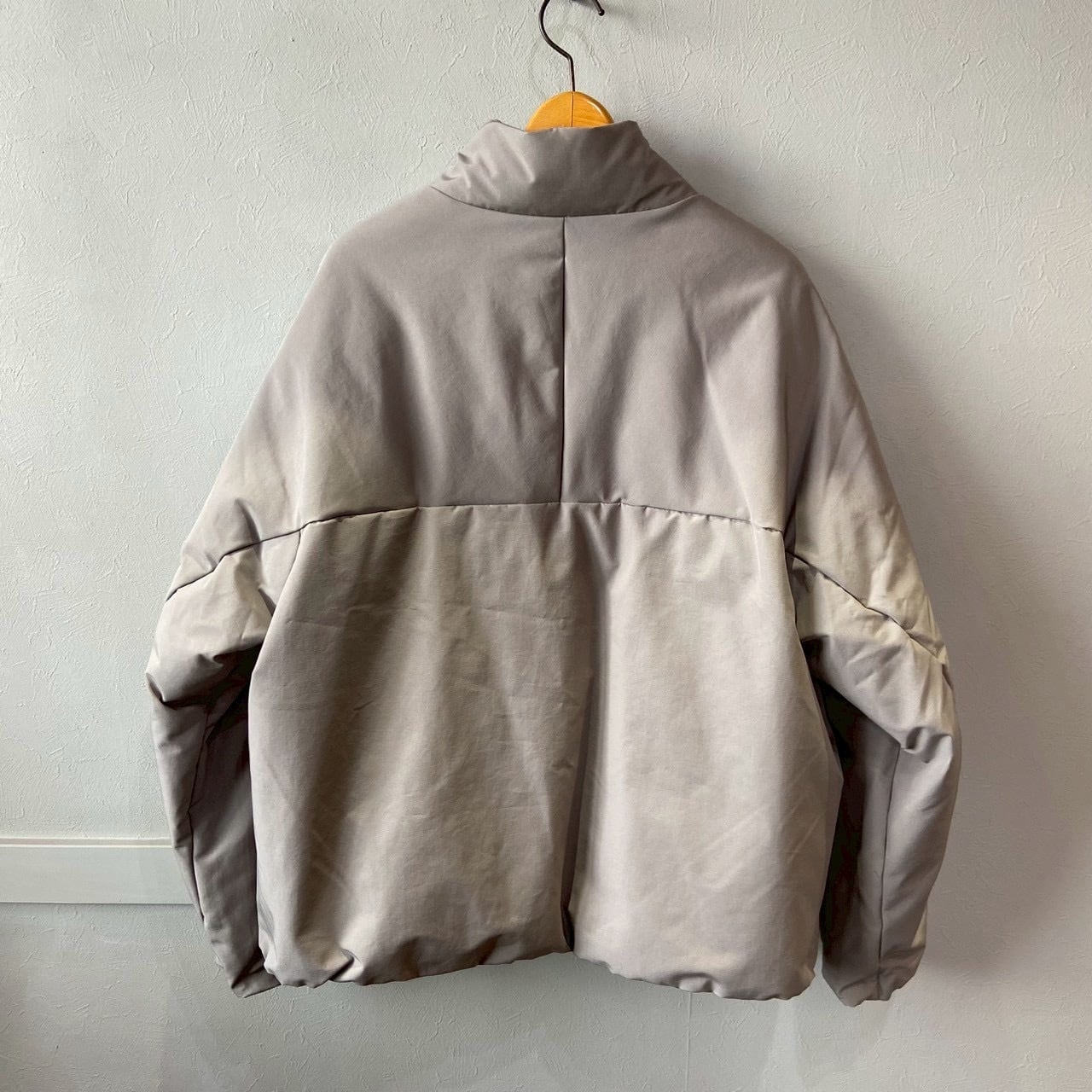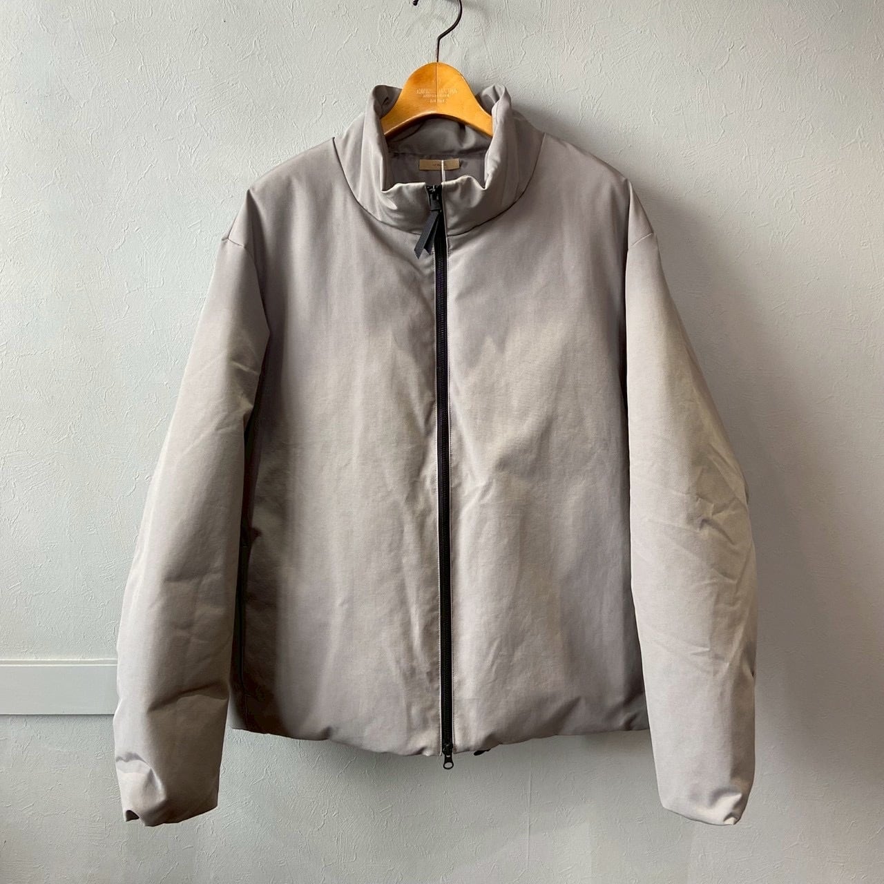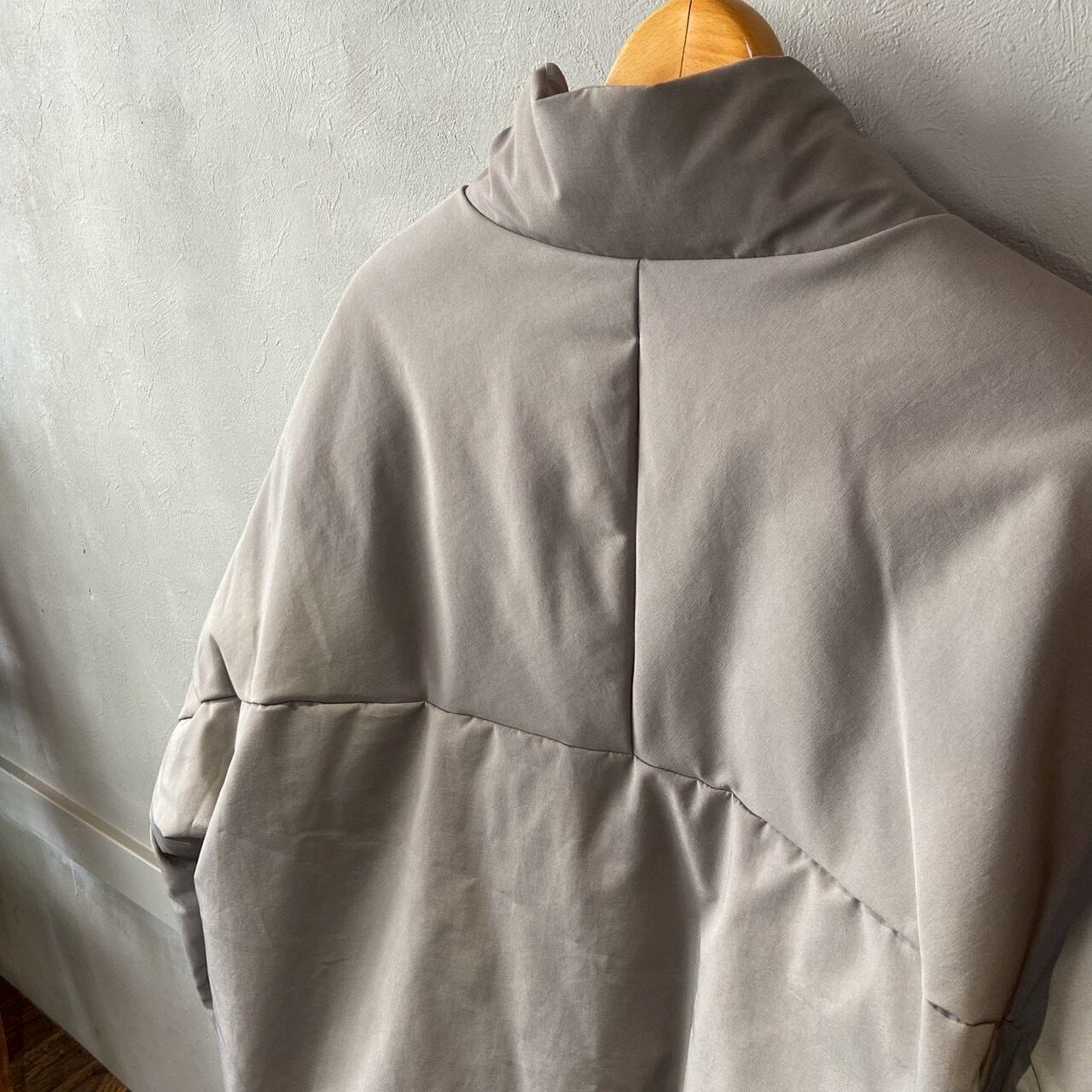 多様なスタイルに溶け込むシンプルさを追求したスタンドカラーのワイドダウンブルゾン。