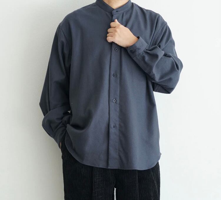 厚手のしっかりしたコットンピケ素材を使用したバンドカラーシャツ。