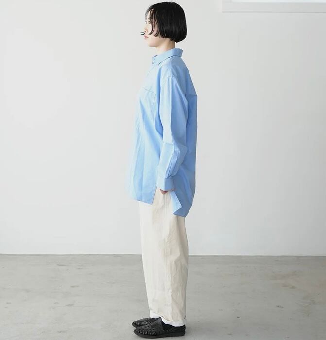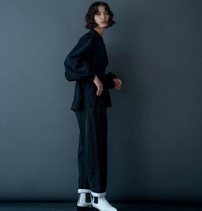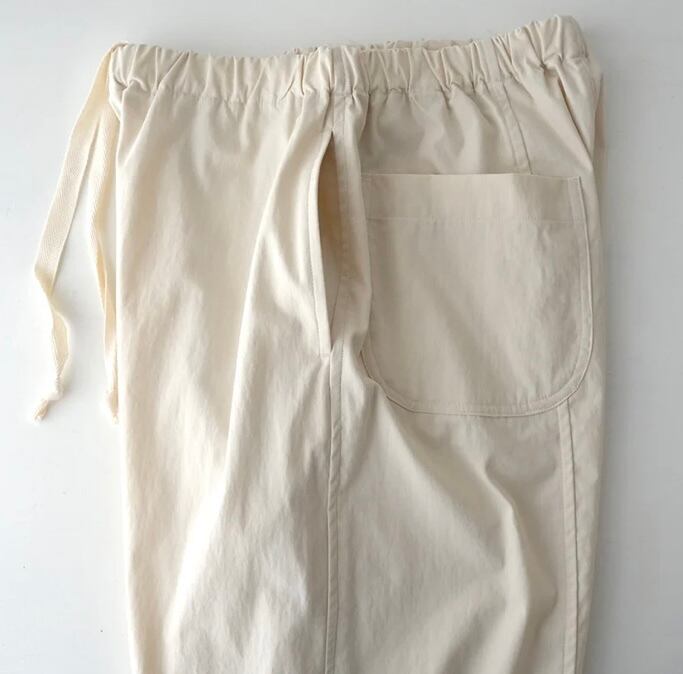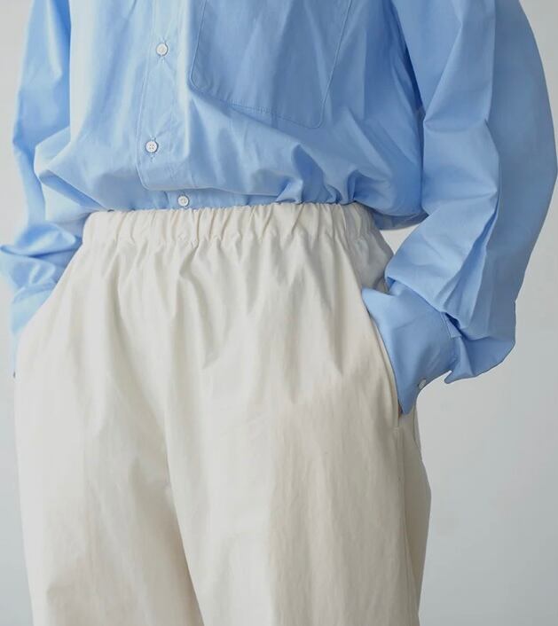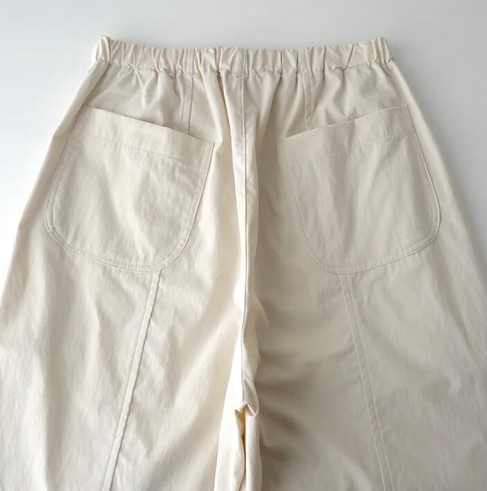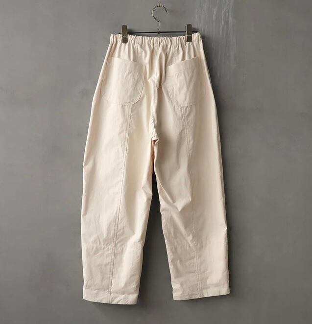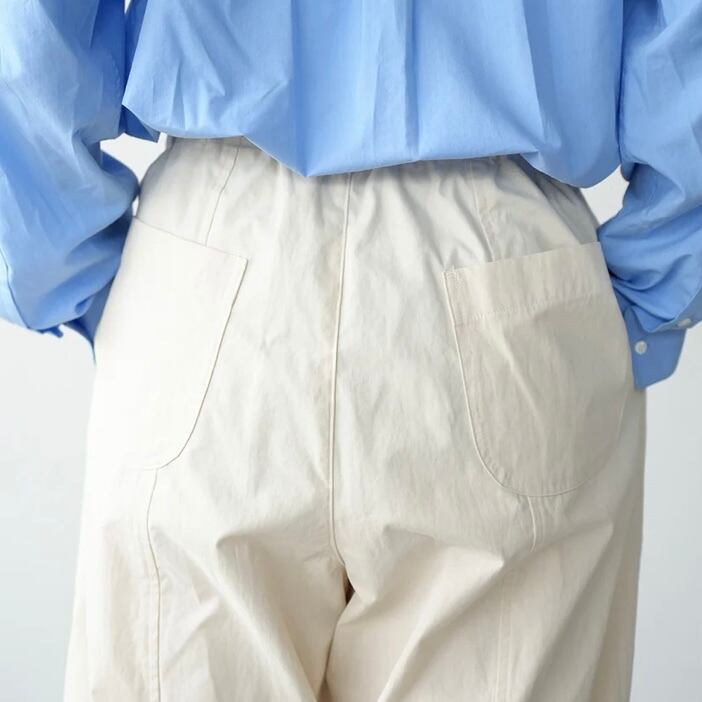 前ヨークと後センターの切り替えが特徴で腰周りに膨らみを入れ裾にテーパードを入れたリラックスパンツです。