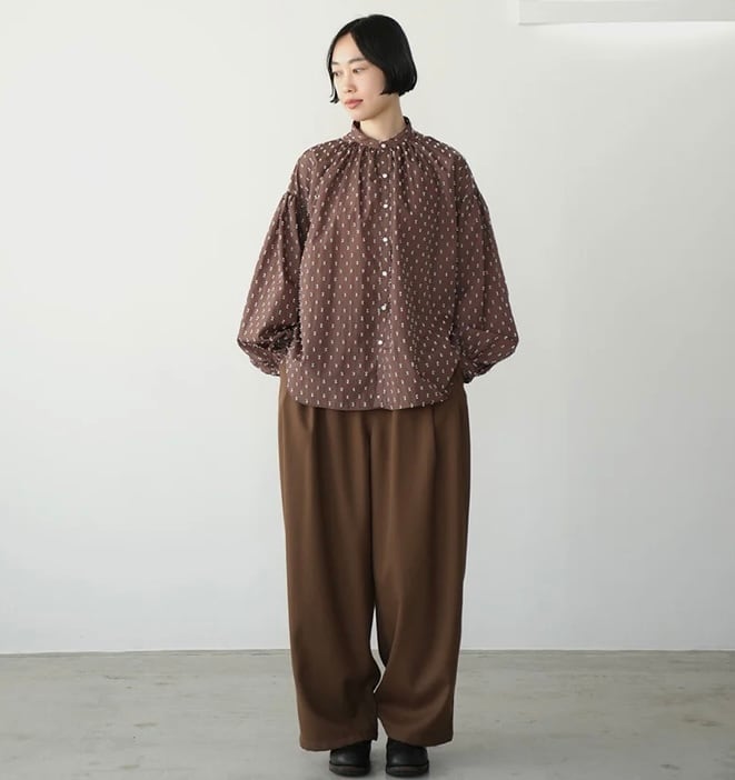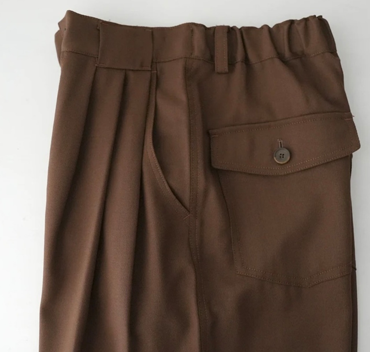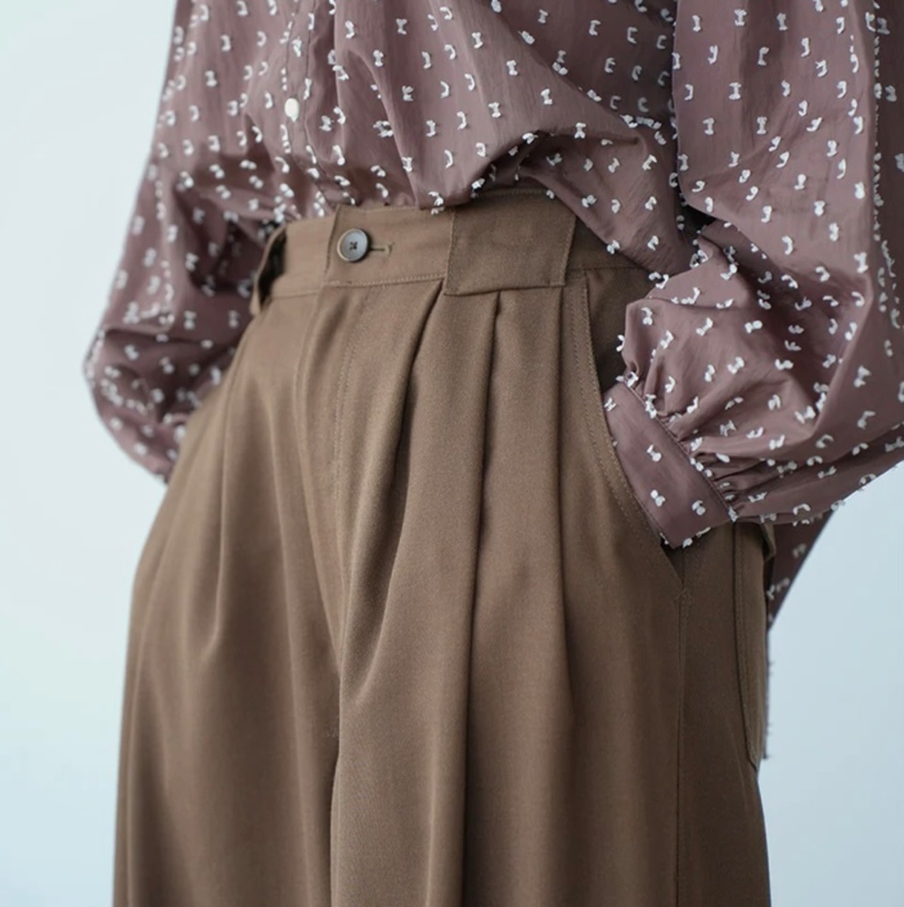 サイド3タックでゆとりを取ったマニッシュな印象に仕上げたワイドテーパードパンツです。