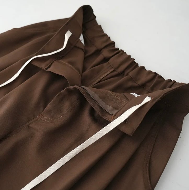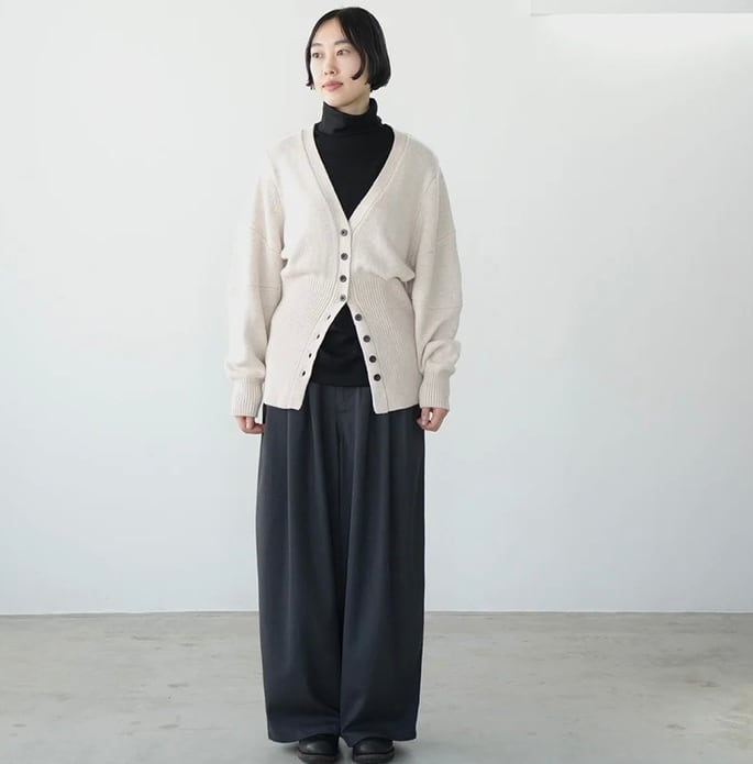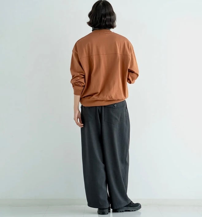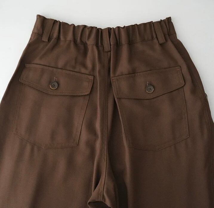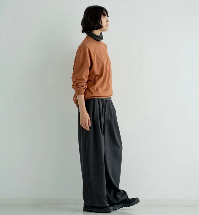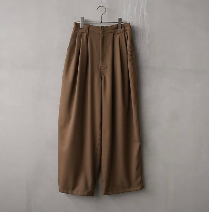 サイド3タックでゆとりを取ったマニッシュな印象に仕上げたワイドテーパードパンツです。
