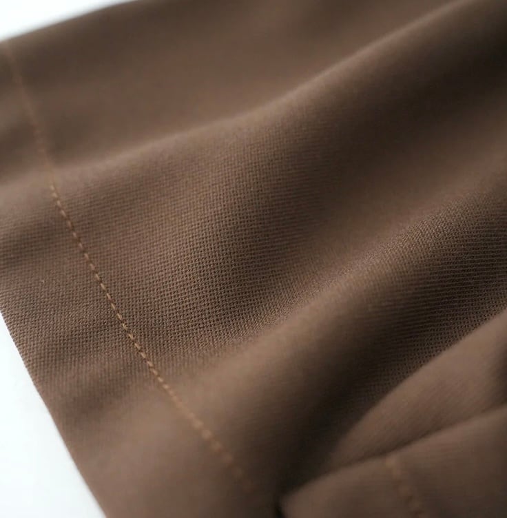 素材はオーストラリアのバージンウールとブレンドし、ウォッシャブルにするためにポリエステルをプラスしたクリア仕上のトリコチン。