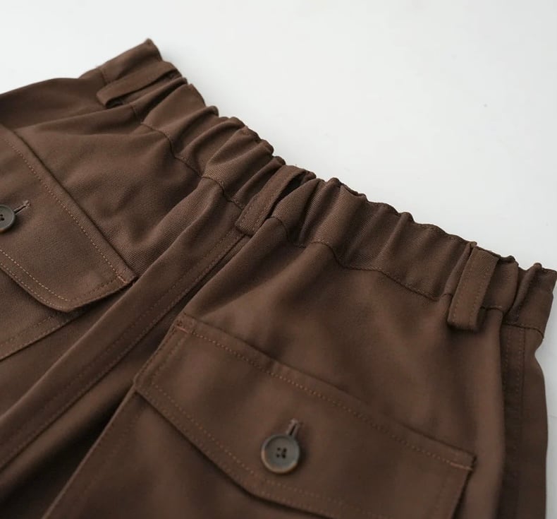 ウエストは前ファスナー+釦開き+スピンドルで後ゴム仕様。