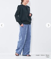 全体的にゆとりのあるオーバーシルエットながら、ウエストはハイライズ仕様。タックを寄せて程よく絞ることで、おなかまわりに締めつけ感がなく、リラックスして着用できます。