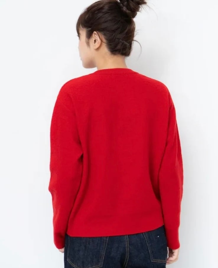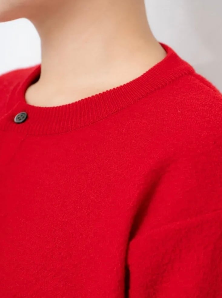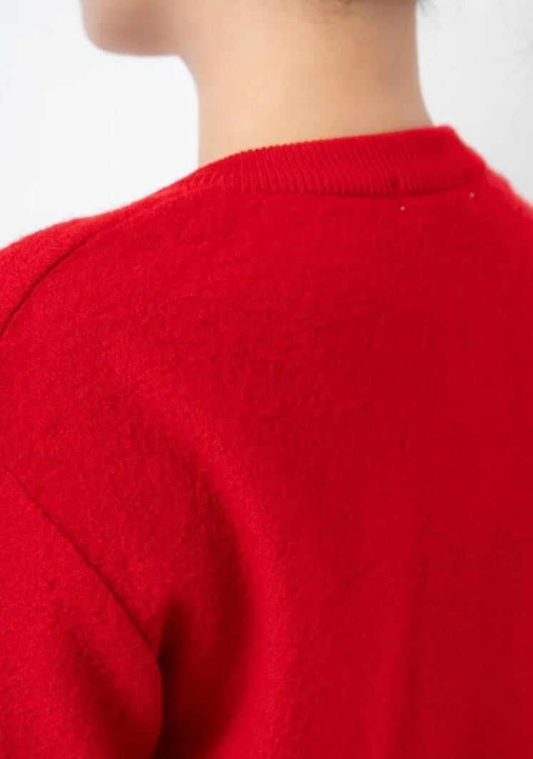 梳毛糸で編み立てた編み地を縮絨させたニット生地を使用。