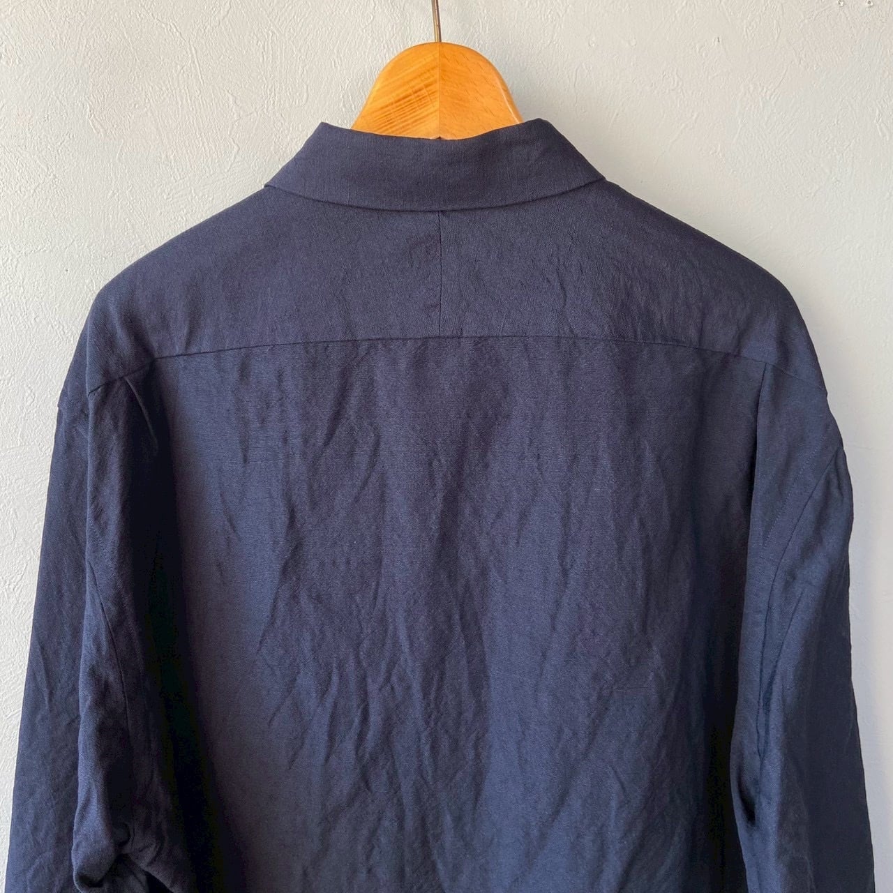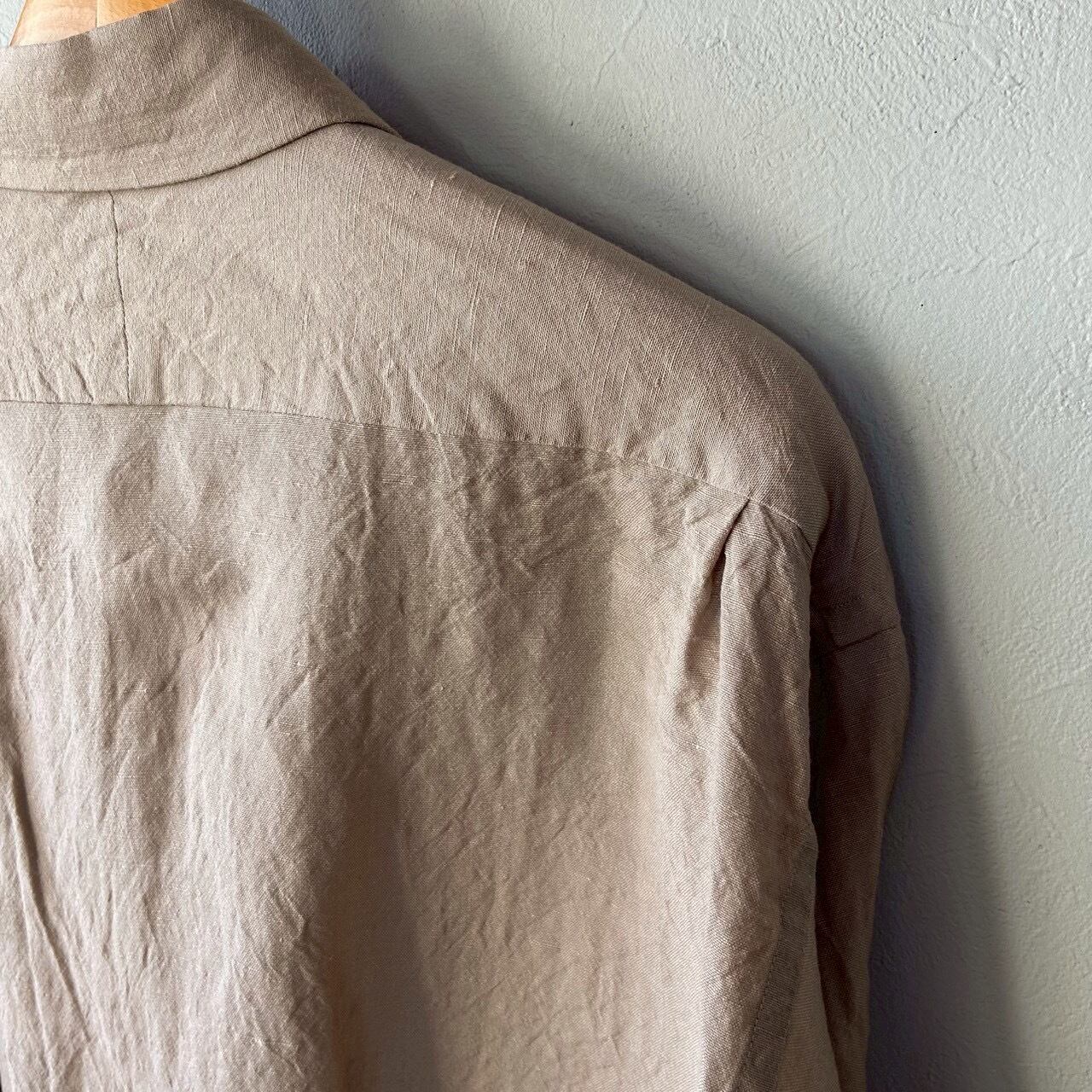 ウール/リネン素材を使用したフラップポケットのレギュラーカラーシャツ。リネン特有の節がありますが、梳毛糸を使用しているシワ感が少なく光沢感があるのが特徴です。暖かくなってから羽織として1枚で着ていただいても様になるアイテムです。