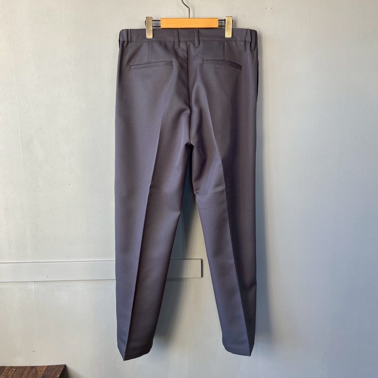 両サイドにゴムを配し、ベルトなしでも着用可能なリラックス感を持ちながら、センタープレス入りでスラックスのような端正な印象に仕上げています。