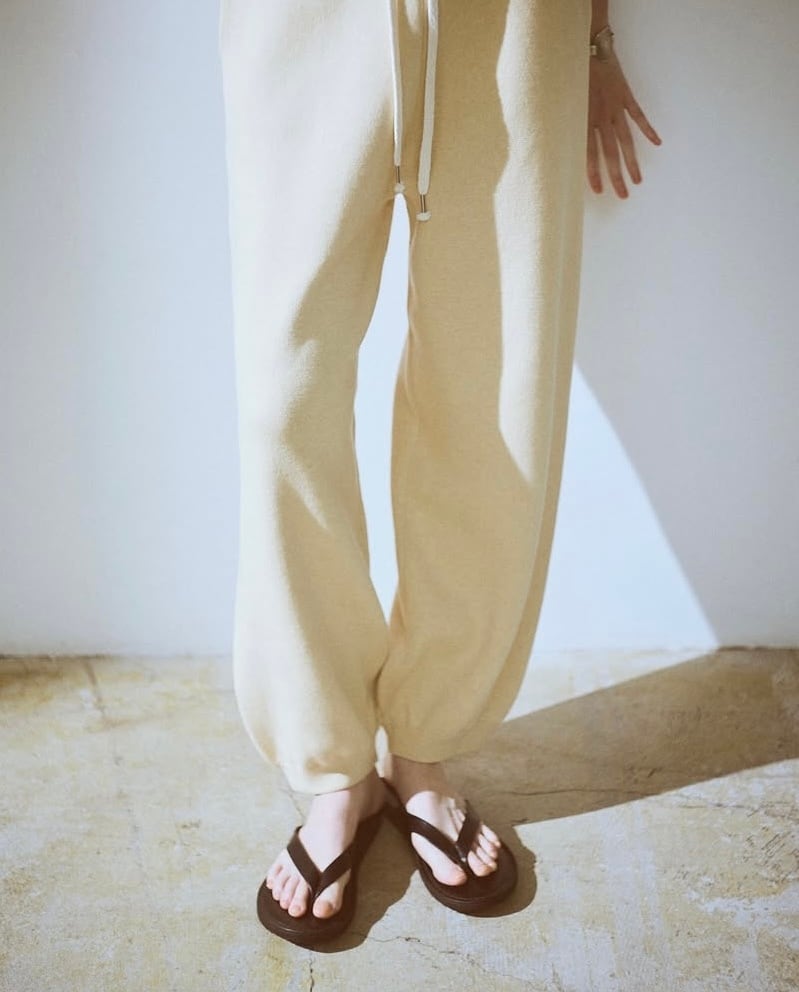 アスレチックウェアのスウェットパンツをイメージしつつ、ニット素材上品に仕上げました。