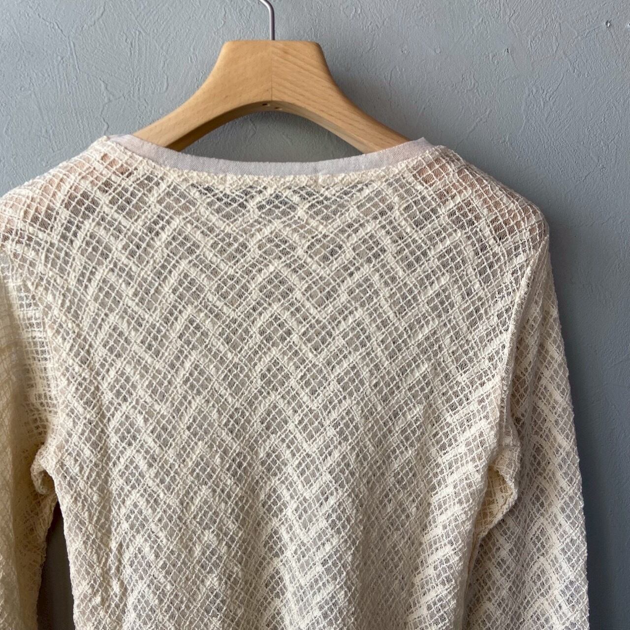 伸縮性のあるレース素材を使用したロングスリーブTシャツ。
