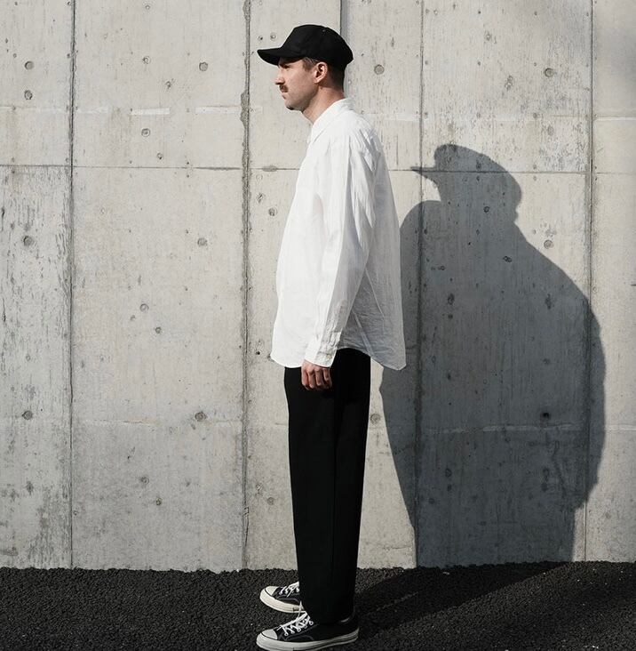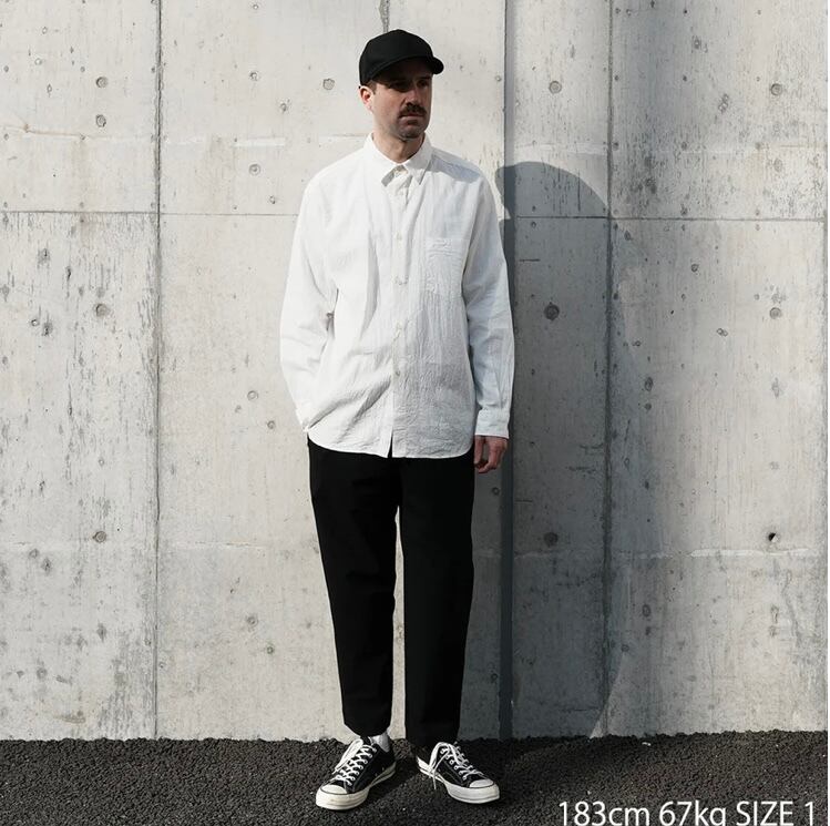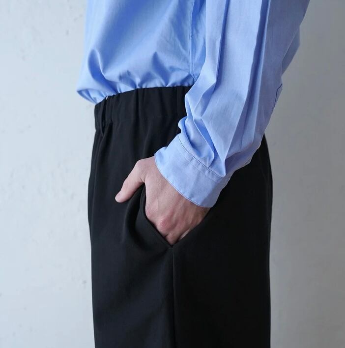 ワイドなシルエットながら裾口を少しテーパードをかけることで収まりの良いデザインとなっています。