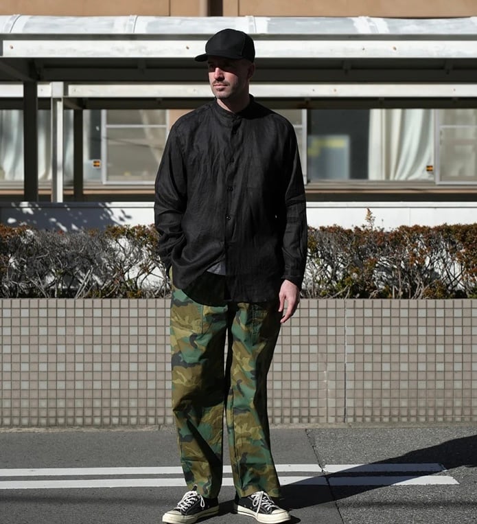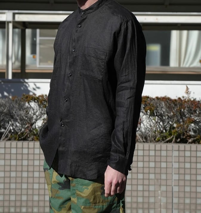 上質なフレンチリネンを使用した、春夏に最適なバンドカラーシャツ。