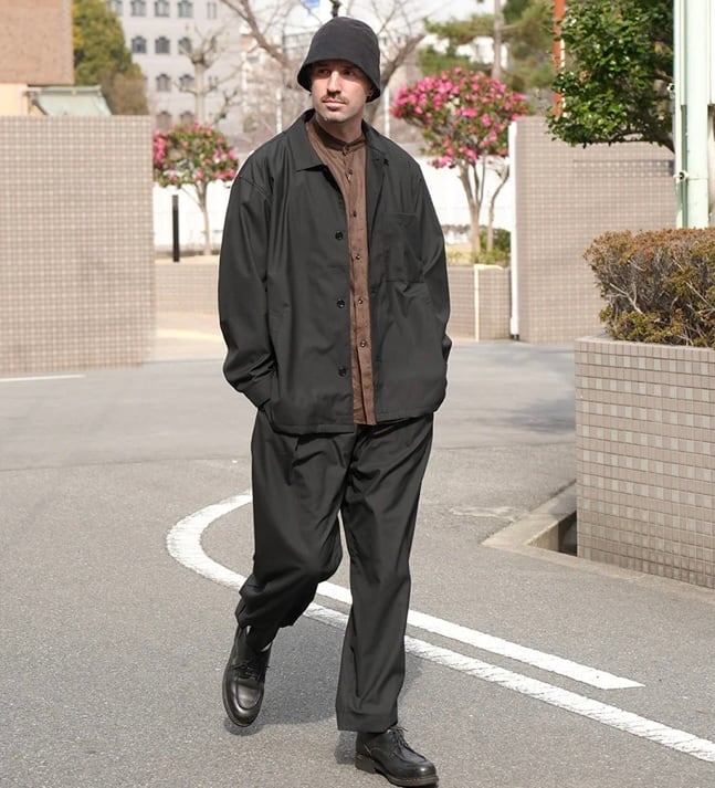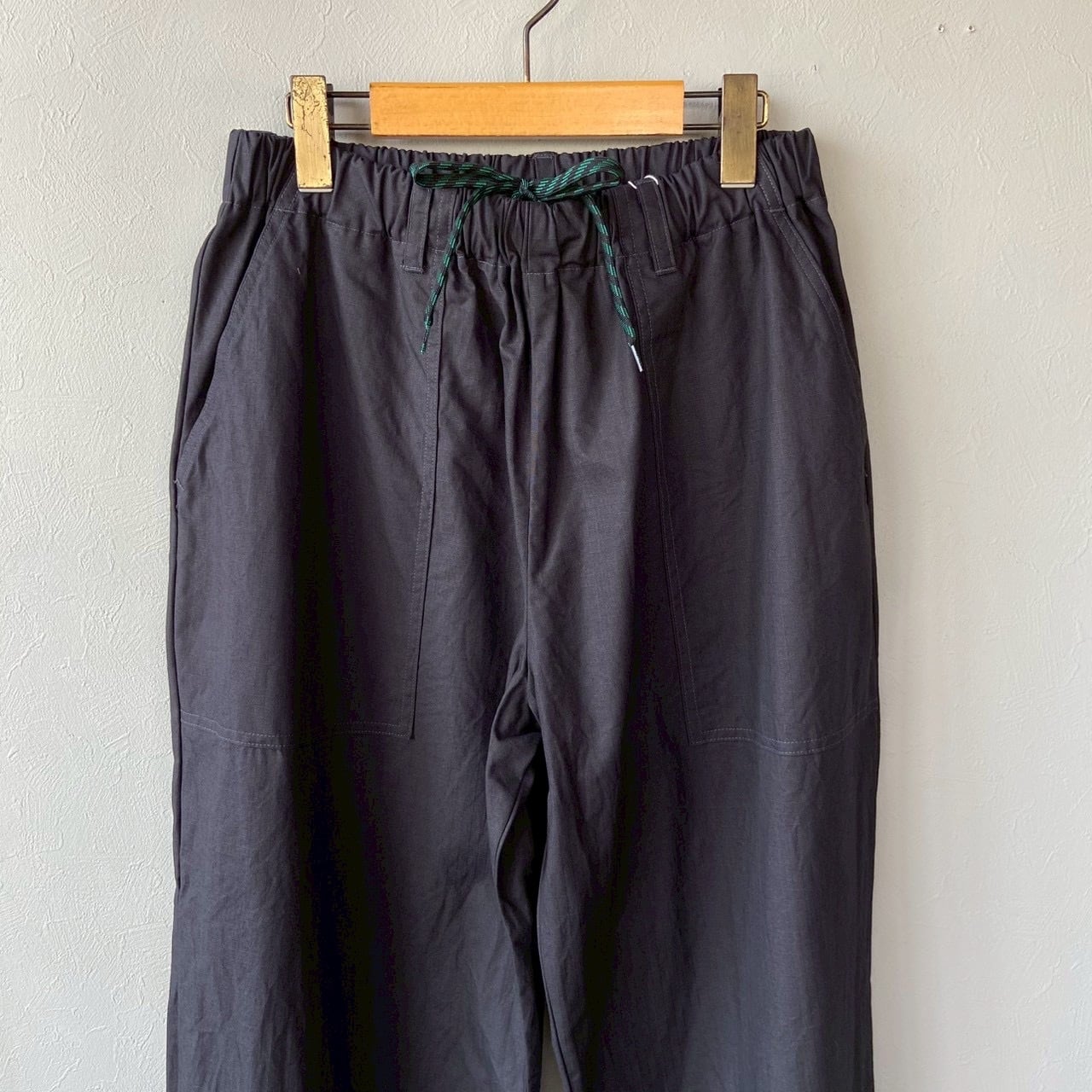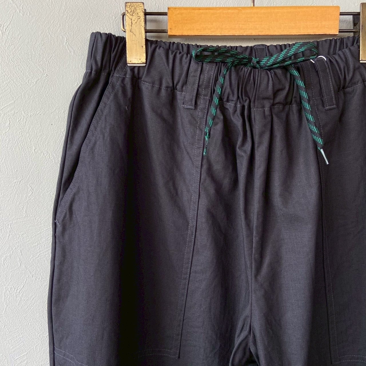 顔料染めのコットンリップストップ素材を使用したイージーパンツ。