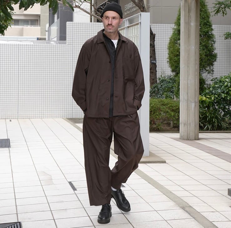 定番のワイドイージーパンツをベイカーパンツ風にアレンジし、丸みのあるユニセックスなシルエットに程よくミリタリー要素をプラスしました。
