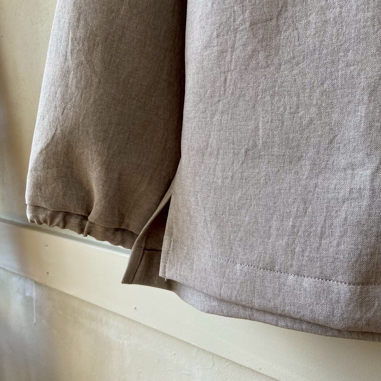 ポリエステルならではの「軽さ」と「シワになりにくさ」を両立。メンテナンスに気を使わず、デイリーに羽織れるのが最大のメリットです。