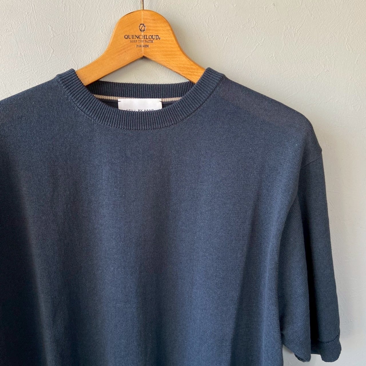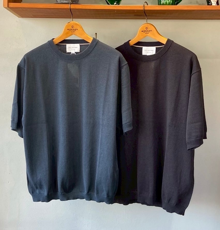 STILL BY HAND スティルバイハンド サマーニット 半袖 Tシャツ/ KN02261 - TEAL BLUE BLACK半袖ニットTシャツ Half sleeve knit t-shirt