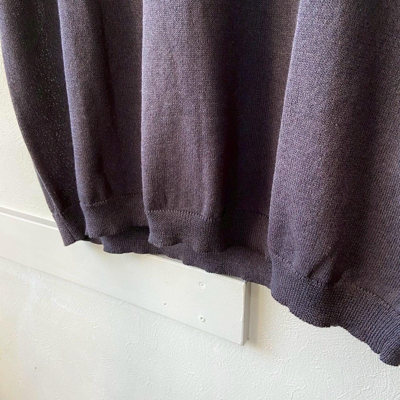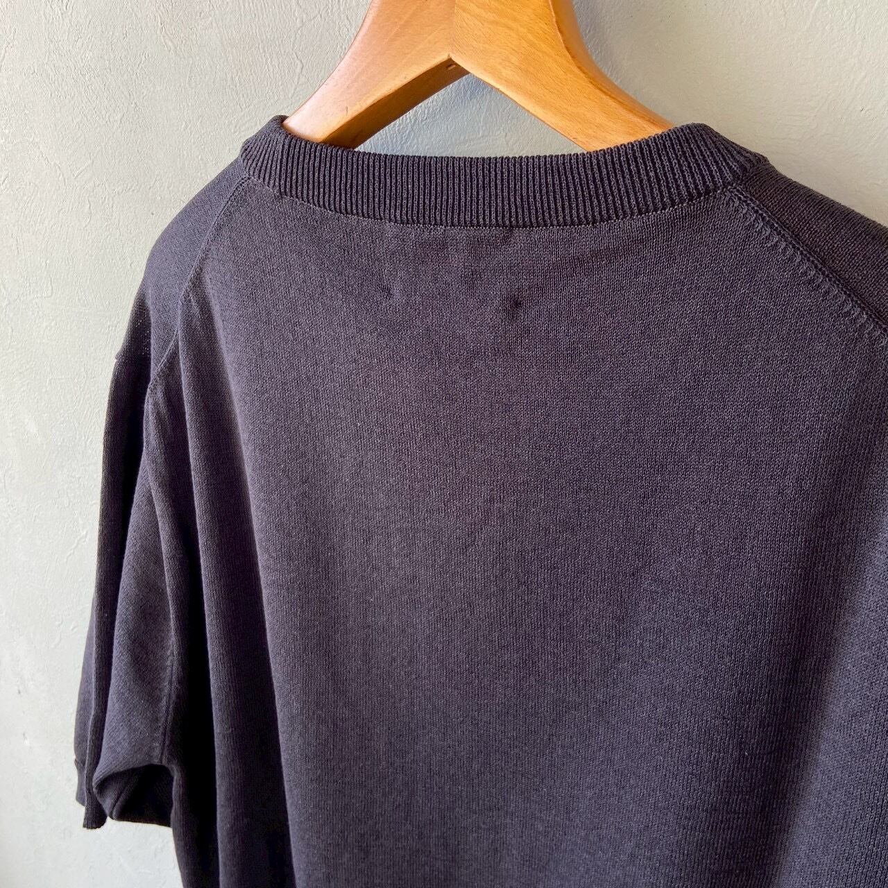 コットン/ポリエステル/リネンのハイゲージニット(12G)半袖Tシャツ。