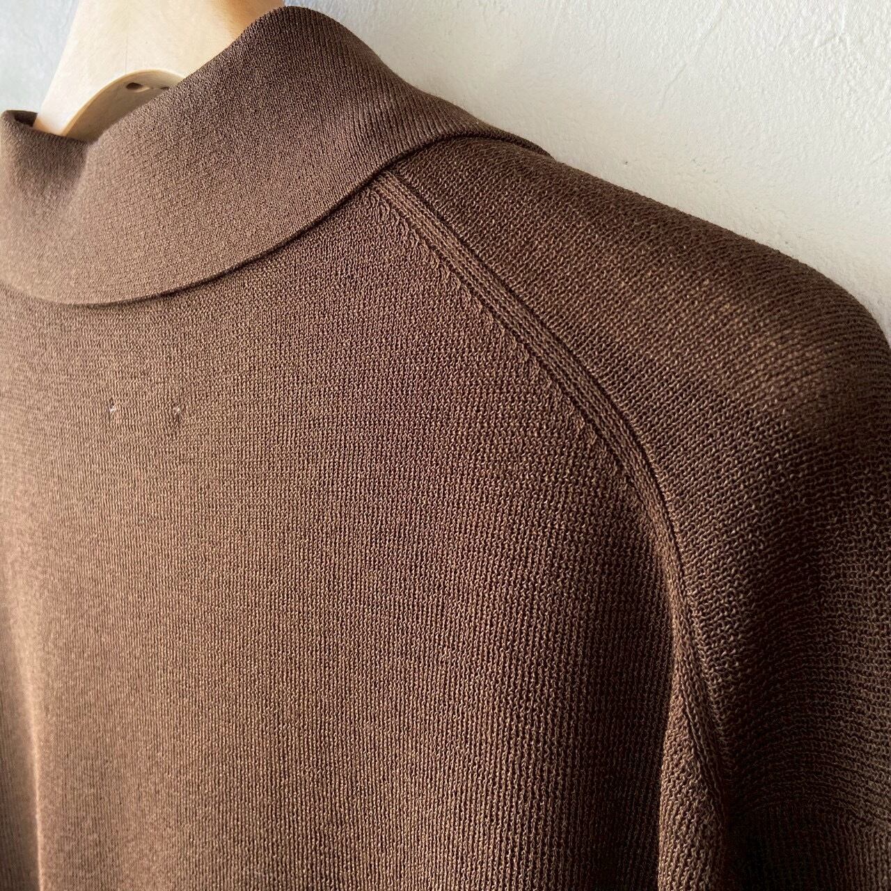 襟元はきちんと感を演出する編み立て仕様。ジャケットのインにもなじみやすく、大人の装いに品を添えます。
