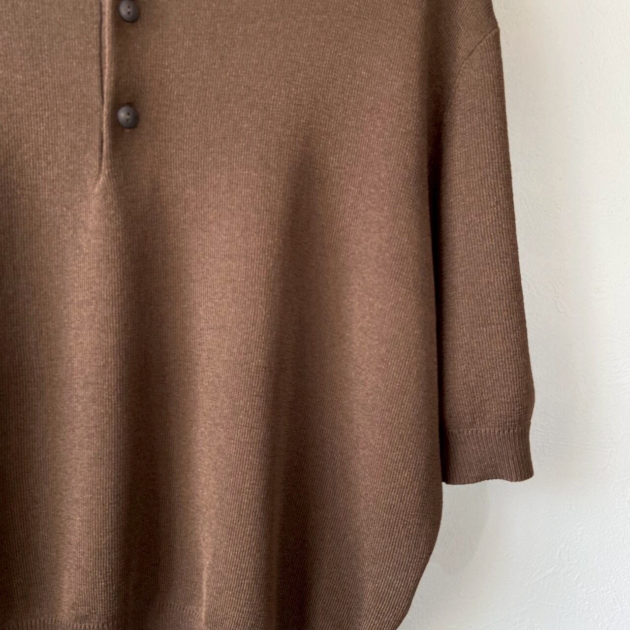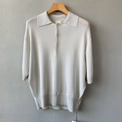 きめ細かなハイゲージ編みの光沢と、コットンアセテートのやわらかな肌ざわりが魅力。吸湿性と撥水性を備え、暑い日もさらりと快適。肘下袖が上品さを引き立て、きれいめからカジュアルまで幅広く着回せます。