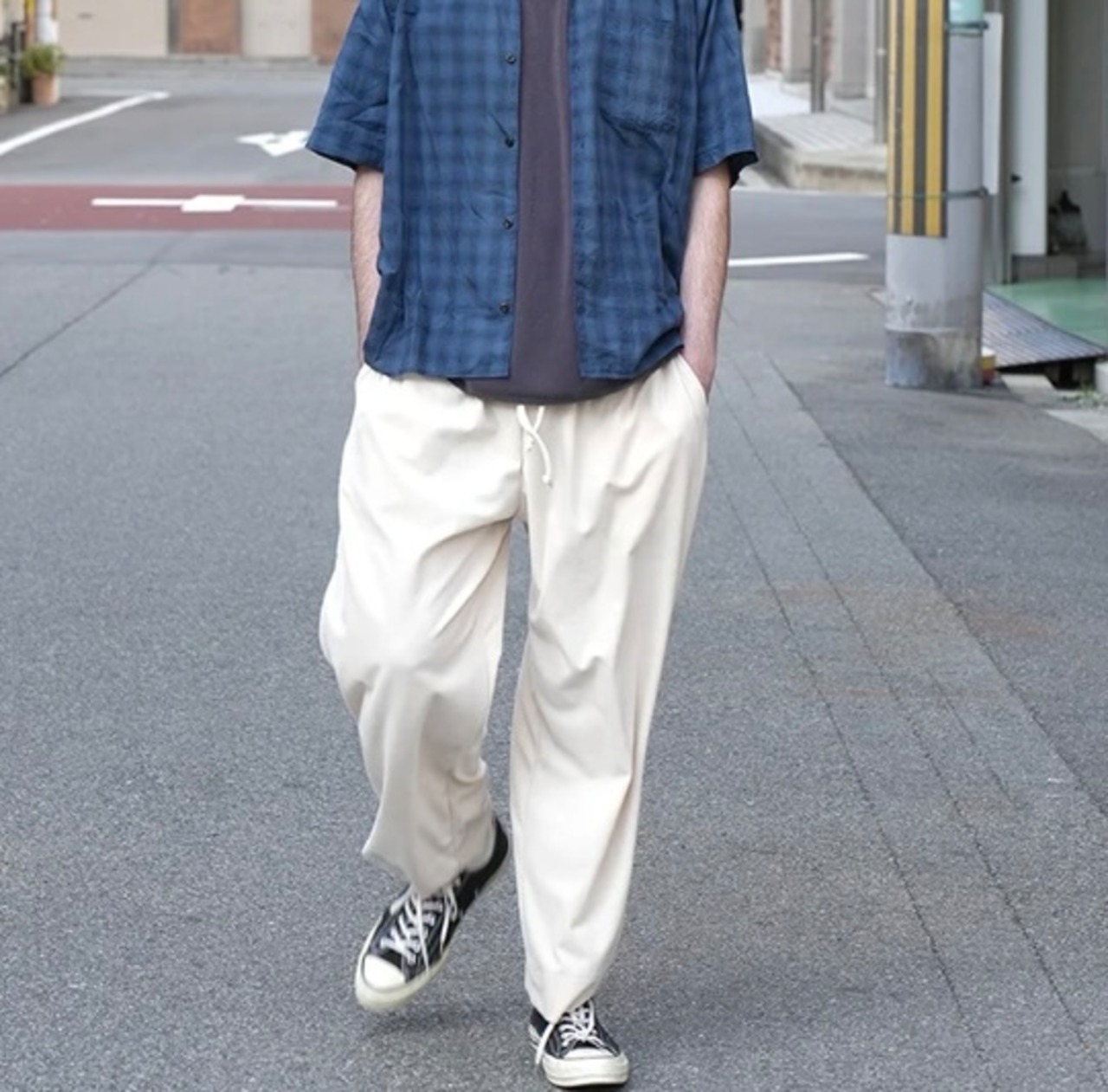 同素材展開の半袖カットソーと合わせてリラックス感のあるセットアップとしても着用可能です。