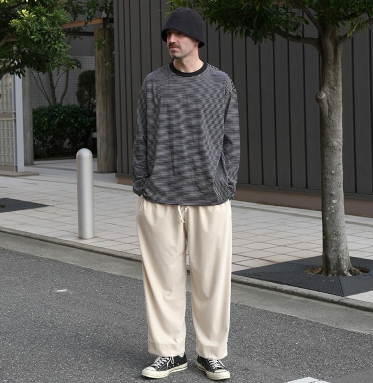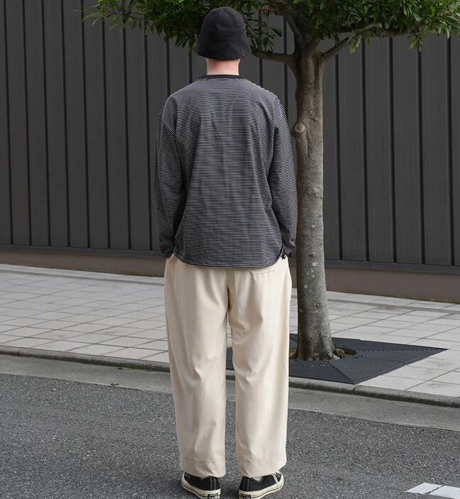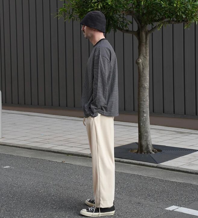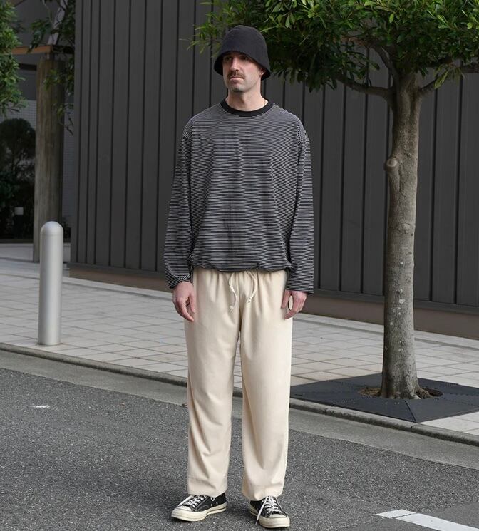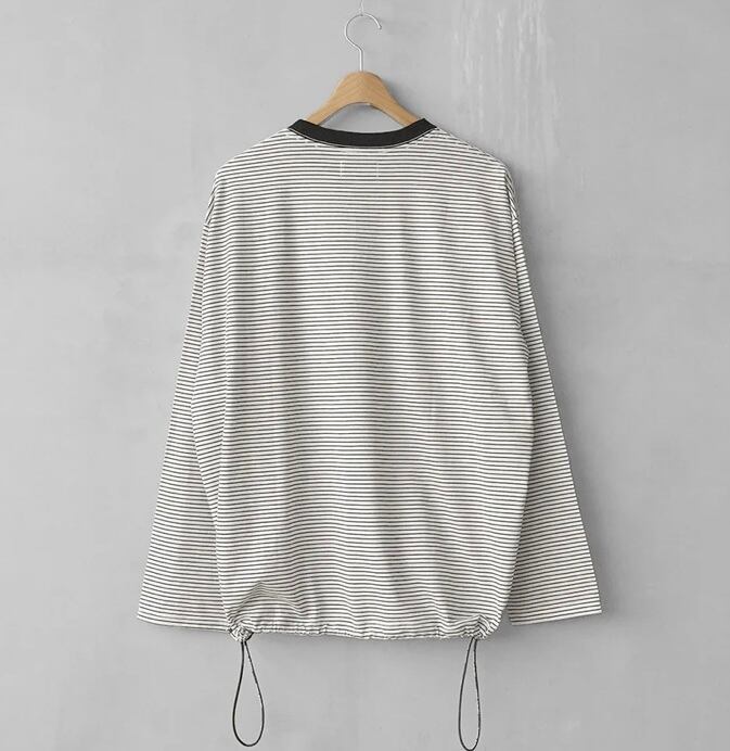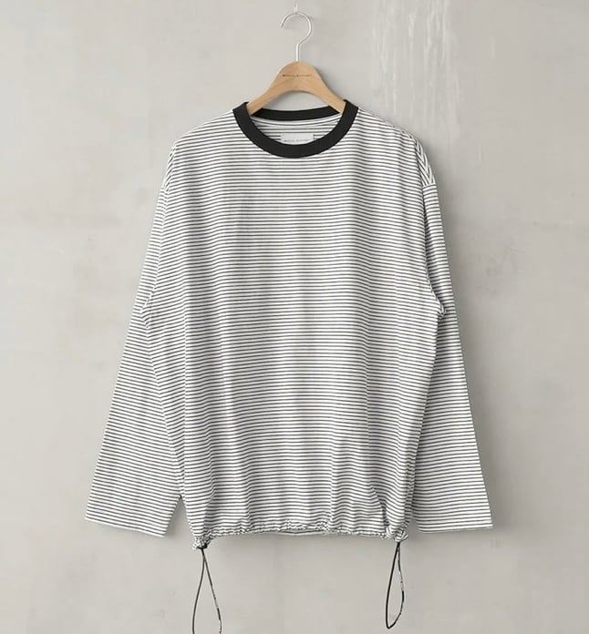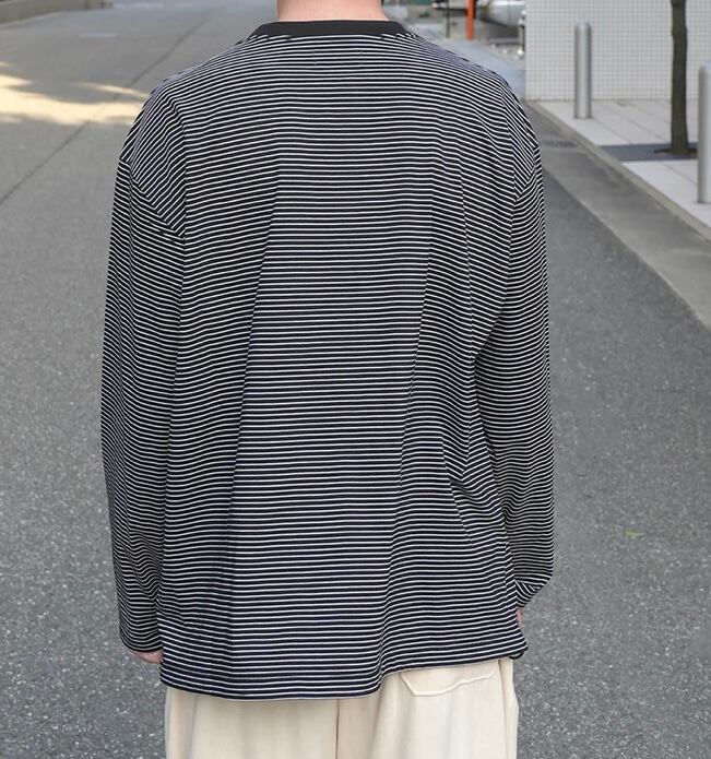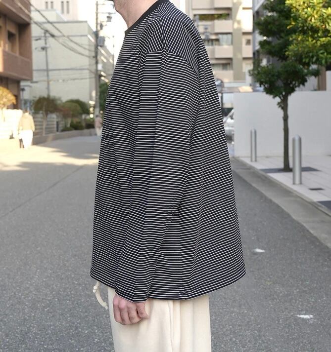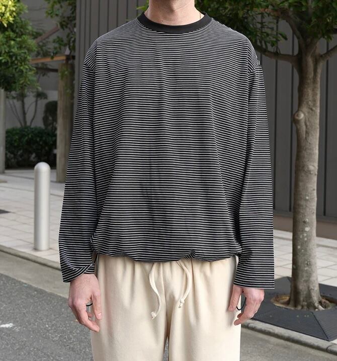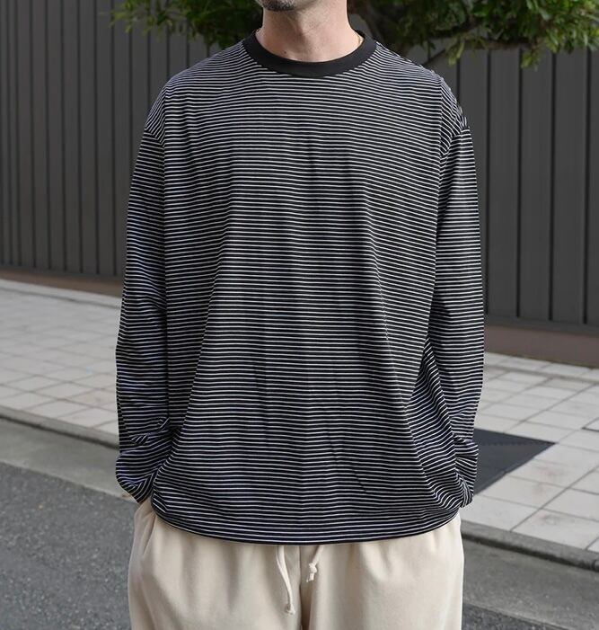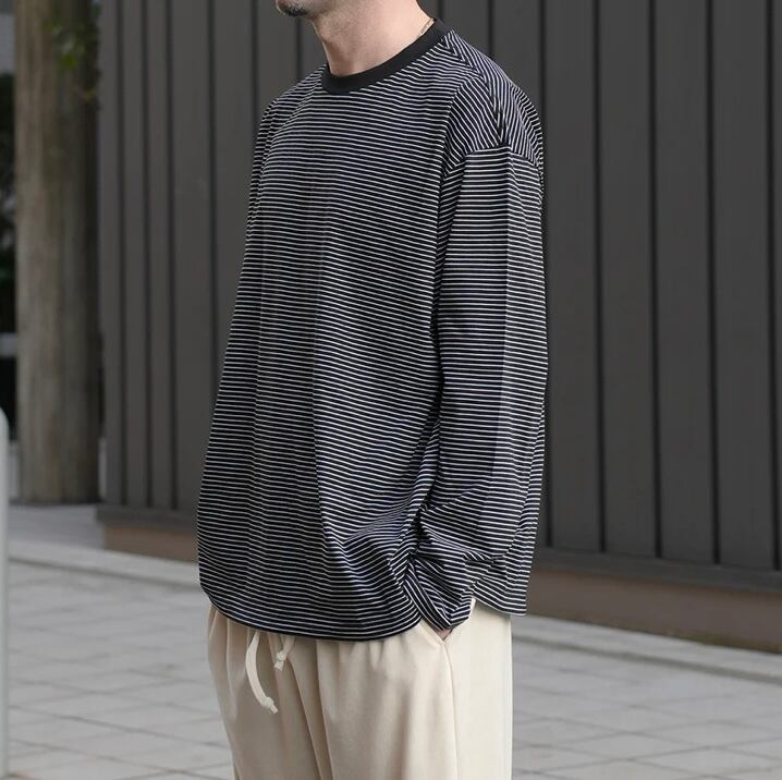 高品質な超長綿のボーダー生地を使用したスピンドル仕様のワイドシルエットの長袖カットソー。