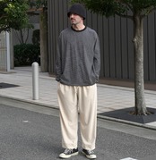 ハイゲージならではのほどよい肉感で透けにくく、着用、洗濯を繰り返しても風合いが変わりにくいのが特徴です。