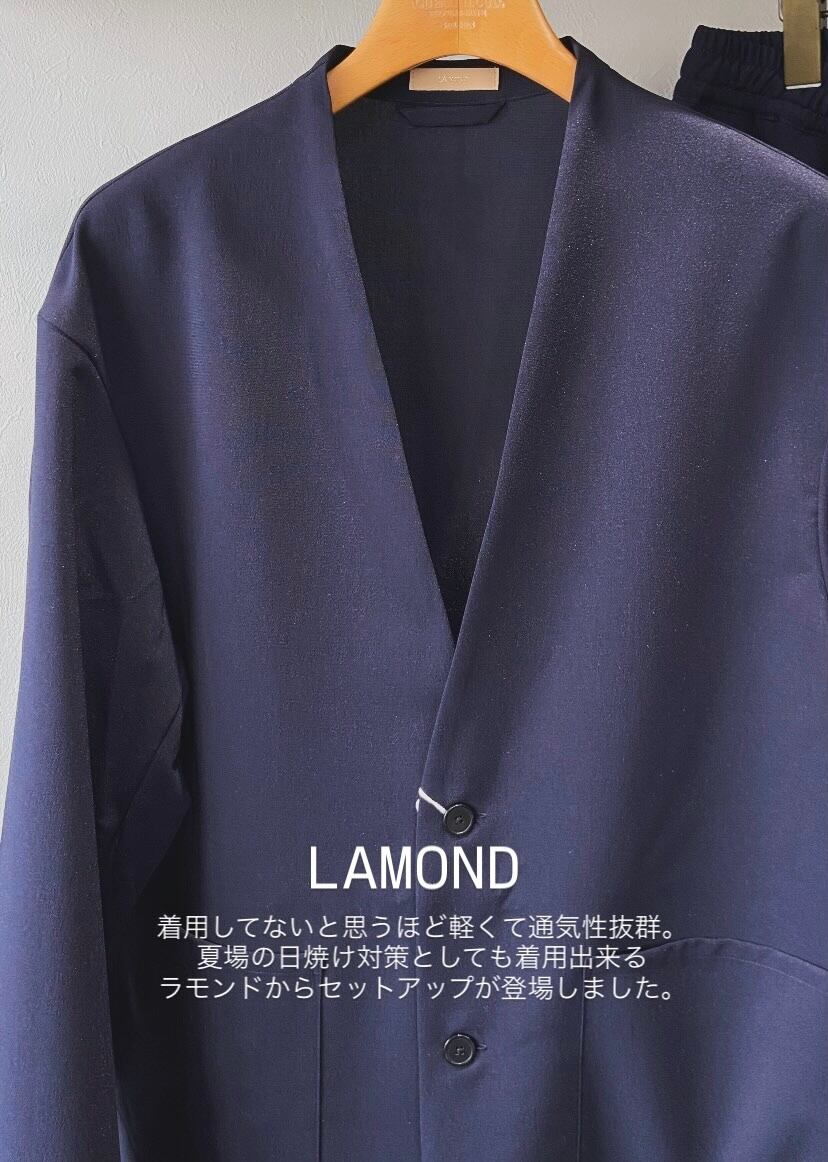 機能素材が生むスポーティーな利便性と、LAMONDらしい洗練されたカジュアルさが融合した、春夏を心地よく過ごすためのマスターピースと言える仕上がりです。