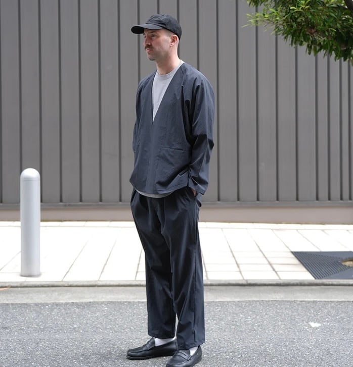 前合わせのないシンプルなデザインながら、ラグランスリーブを採用することで肩周りの