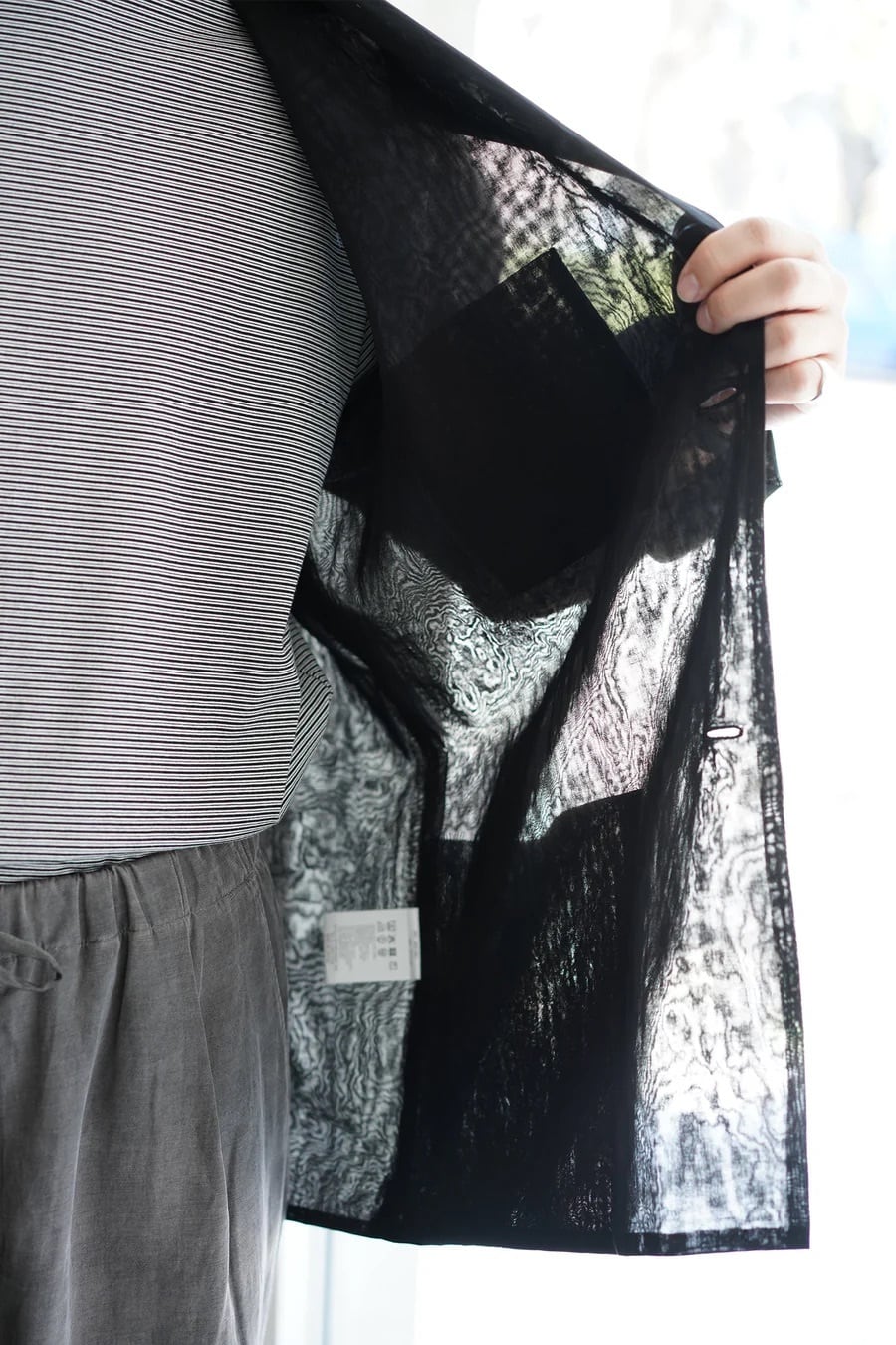 透けるほどの薄さですので、暑い時期でも軽快に着用していただけます。