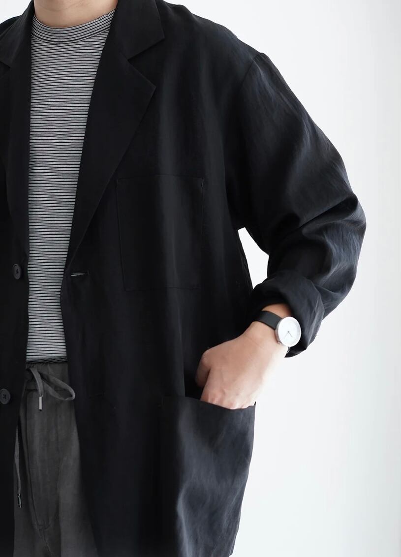 薄く通気性に優れた生地のオーバーサイズジャケットです。