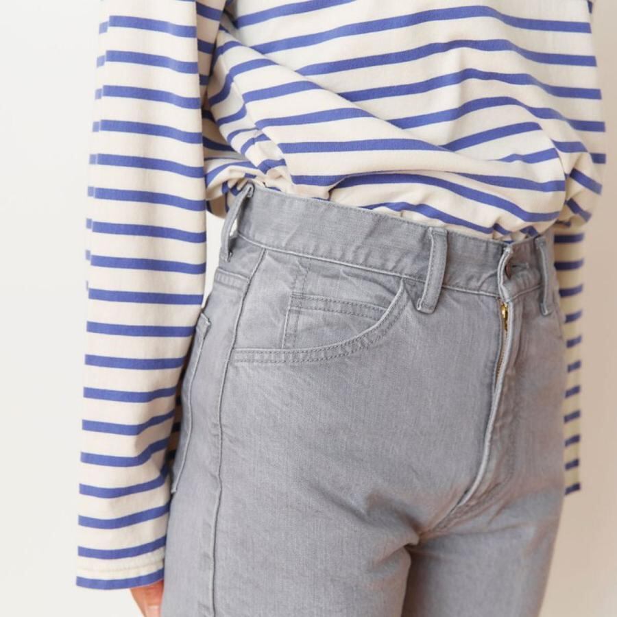 ほどよい股上と膝下から細くなったシルエットは、以前発売したスリムカットオフジーンズのウエスト周りを同様に